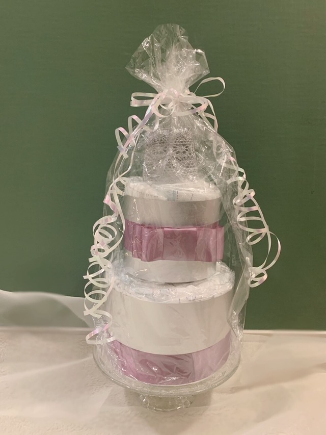 お好きな段数、お色、オプションで組み合わせ可能なおむつケーキです。 こちらは2段Ver.のページです。 【サイズ選択】 ・小サイズ 上段:直径12cm 高さ10cm おむつ6枚 下段:直径15cm 高さ10cm おむつ8枚 ・中サイズ 上段:直径12cm 高さ10cm おむつ6枚 下段:直径17cm 高さ10cm おむつ12枚 ・大サイズ 上段:直径15cm 高さ10cm おむつ8枚 下段:直径17cm 高さ10cm おむつ12枚 【使用おむつ】 パンパース はじめての肌へのいちばん 新生児テープS 【本体お色】 ゴールド シルバー 【リボンお色】 ピンク イエロー グリーン スカイブルー ブルー パープル パープルグレー 【オプション】 ①王冠(クラウン)追加:小 直径7cm×高さ6.5cm ②王冠(クラウン)追加:大 直径12cm×高さ6.5cm ③ベビーブルマ追加:1枚 ※推奨年齢:4ヶ月〜12ヶ月 ※ブルマのお色はこちらでセレクトさせていただきます。 ④ベビーブルマ追加:2枚 ※中サイズ選択時のみ可能(小サイズ選択の場合注文不可) ※推奨年齢:4ヶ月〜12ヶ月 ※ブルマのお色はこちらでセレクトさせていただきます。 ⑤ベビーブルマ追加:3枚 ※中サイズ選択時のみ可能(小サイズ選択の場合注文不可) ※推奨年齢:4ヶ月〜12ヶ月 ※ブルマのお色はこちらでセレクトさせていただきます。