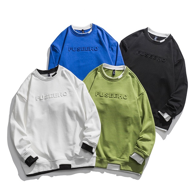トップス トレーナー 長袖 Uネック ワイド 綿 スポーティー 主役級 存在感 オールシーズン 10代 20代 30代 メンズ 男性用 休日 運動 ジム イベント M L XL 2XL ゆったり ホワイト ブラック ブルー グリーン