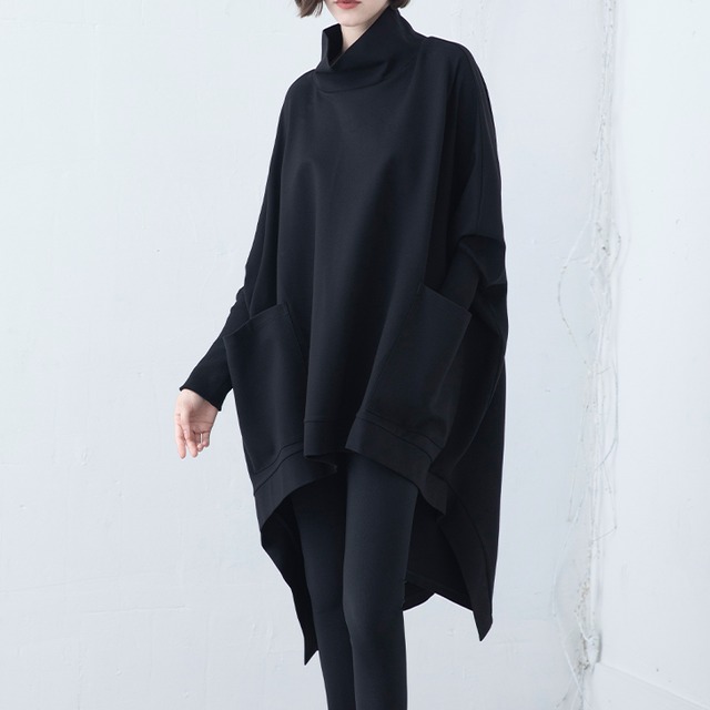 トップス ワンピース ショート ショート丈 ロング ロング丈 袖あり 長袖 タートルネック アシンメトリー きれいめ シンプル 大人 おしゃれ お洒落 かっこいい 大人女子 こなれ感 ラフ メンズライク マニッシュ ボーイッシュ 個性的 クール モード系 セクシー 春 秋 冬 2022 2023 10代 20代 30代 40代 50代 60代 レディース 女性用 お出かけ 休日 パーティー イベント 楽ちん S M L XL 黒 ブラック
