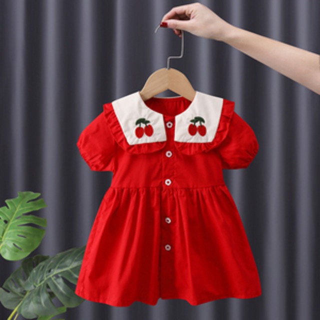 【ベビー】さくらんぼの赤いワンピース 80 90 100 110 120 130cm