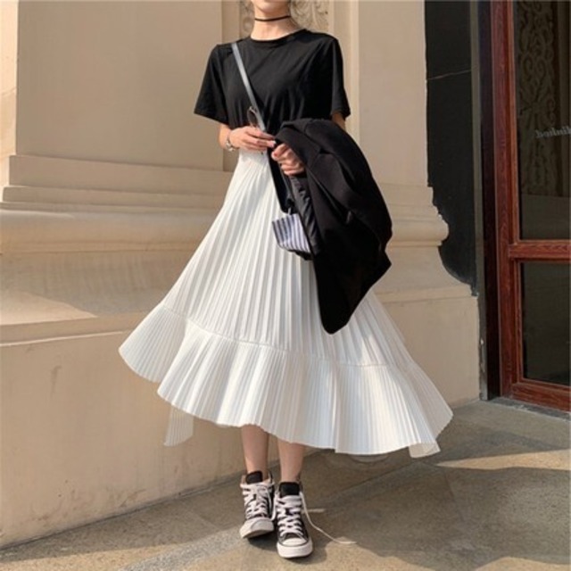 スカート ボトムス プリーツスカート フレアスカート 膝下 ミモレ セミフレア マーメイド アシンメトリー 大人可愛い きれいめ 大人 上品 おしゃれ お洒落 かっこいい 大人女子 こなれ感 ラフ 個性的 エレガント 主役級 存在感 春 夏 秋 冬 オールシーズン シーズンレス 2022 2023 10代 20代 30代 40代 50代 60代 レディース 女性用 デート お出かけ S M L XL 2XL 白 ホワイト 黒 ブラック