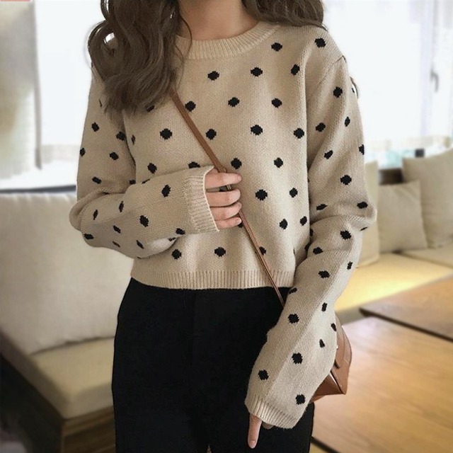 トップス セーター プルオーバー 袖あり 長袖 萌袖 ショート丈 クルーネック ワイド 伸縮性 かわいい きれいめ シンプル カジュアル 大人 上品 おしゃれ お洒落 レトロ 大人可愛い 大人女子 こなれ感 ラフ キュート ルーズ エレガント モダン 抜け感 フェミニン ルーズ コットン 綿 ドット柄 水玉 春 秋 冬 レディース デート お出かけ 着回し 普段使い お揃い 楽ちん ギフト プチプラ プレゼント 大きいサイズ ビッグサイズ ゆったり ゆる 大きめ