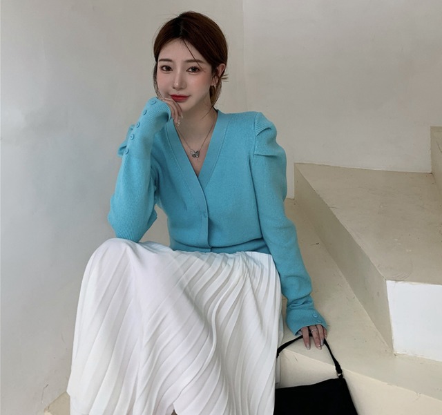 トップス カーディガン 袖あり 長袖 ボリューム袖 パフスリーブ ドロップショルダー Vネック ワイド 前開き ボタン ニット アクリル かわいい 大人可愛い きれいめ シンプル カジュアル 大人 上品 おしゃれ お洒落 大人女子 こなれ感 ラフ キュート ガーリー ルーズ エレガント 抜け感 フェミニン 無地 春 秋 10代 20代 30代 40代 レディース 女性用 学生 通学 デート お出かけ 休日 着回し 普段使い 重ね着 暖かい モテ 体系カバー プレゼント ギフト 定番 ゆったり ゆる