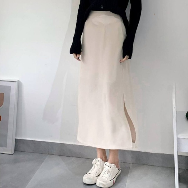 スカート ボトムス ロングスカート ペンシルスカート タイトスカート 膝下 ミモレ ミモレ丈 スリム タイト 細身 ストレート Iライン スマート ハイウエスト 前開き 厚手 かわいい 大人可愛い きれいめ シンプル 大人 上品 おしゃれ お洒落 かっこいい 大人女子 こなれ感 クール モード系 セクシー エレガント モダン 無地 秋 冬 10代 20代 30代 40代 レディース オフィス ビジネス OL 通勤 学生 通学 デート お出かけ スタイル モテ 美脚 脚長 黒 ブラック 灰色 グレー