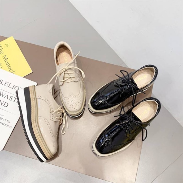 ブローギングが施された厚底のオックスフォードシューズです。 6cmの厚底で、スタイルアップに期待できます。 つま先側の厚みは4cmなので、つま先から踵にかけてのカーブが緩やかで歩きやすく、履き心地抜群です。 色展開 ブラック ベージュ ホワイト シルバー ブラック(裏起毛) ベージュ(裏起毛) サイズ 35 36 37 38 39 40 サイズ(cm) 35 /長さ 22.5 /ヒール 6 36 /長さ 23 /ヒール 6 37 /長さ 23.5 /ヒール 6 38 /長さ 24 /ヒール 6 39 /長さ 24.5 /ヒール 6 <ご注意> ◆画像はご覧になっているパソコン・モニター等により実際の商品と多少色味が異なる場合がございます。色味が違う等のクレームはお受けできませんので予め、ご了承下さい。 ◆平置き・メジャー採寸ですので、サイズ表記に若干の誤差が生じる場合がございます。 ◆当サイトは複数店舗で販売している関係で、ご注文のタイミングによっては在庫にズレが生じ、商品をご用意できない場合がございます。 その場合には誠に恐れ入りますが、ご注文後にお取り消しの手続きをさせていただきますので予めご了承いただけますと幸いです。 ◆送料、発送予定日数につきましては、ショッピングガイドをご覧ください。 LBS-1181