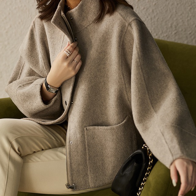 アウター コート ジャケット 長袖 スタンドカラー ショート丈 厚手 無地 ダブルフェイス 大人可愛い きれいめ シンプル 大人 上品 おしゃれ かっこいい 大人カジュアル 大人女子 こなれ感 エレガント ラグジュアリー シック ナチュラル 秋 冬 レディース オフィス OL 通勤 学生 通学 デート お出かけ 旅行 ホテル レストラン 着回し 普段使い 重ね着 華奢見え デイリー コーデ 暖かい 防寒 モテ きちんと感 日常使い 休日 小顔効果 大人カラー モノトーン