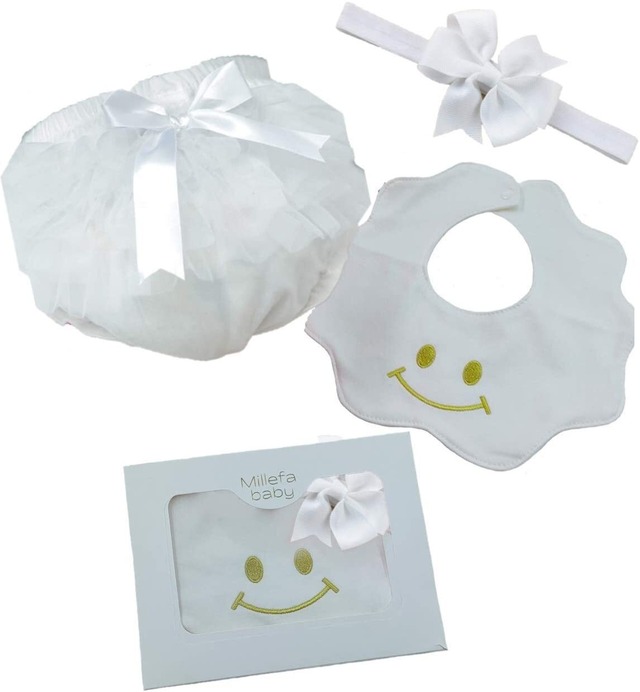 Millefa Baby ギフトBOX付き!ベビー 女の子 ギフト3点セット(フリルブルマ・スタイ・ヘアバンド)【ホワイト】