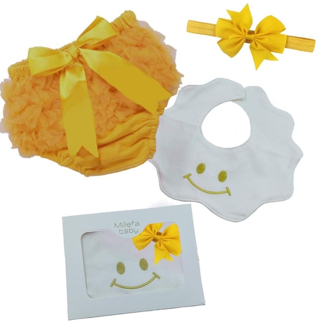 Millefa Baby ギフトBOX付き!ベビー 女の子 ギフト3点セット(フリルブルマ・スタイ・ヘアバンド)【パンプキン】