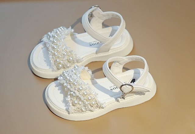 【子ども】女の子 かわいい パールのお姫様サンダル オフホワイト ブラック お出かけ 14.8cm~19.7cm