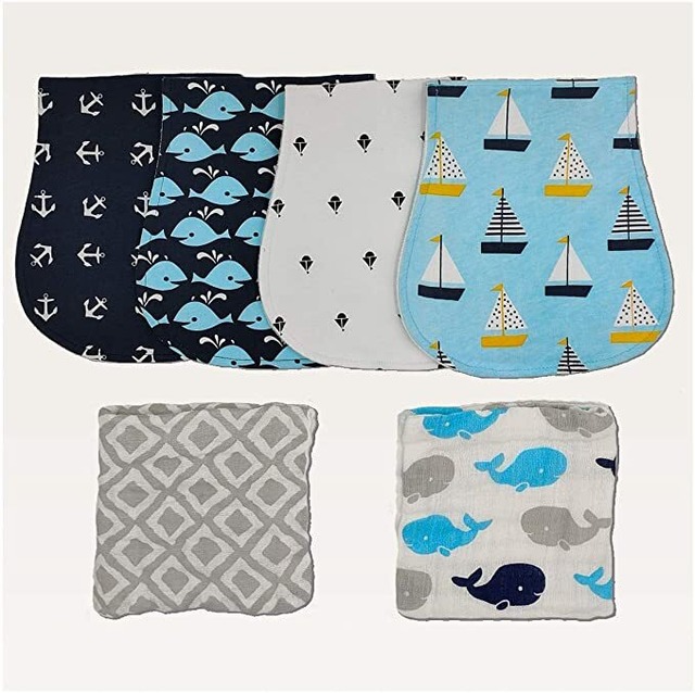 MIllefa Baby 6点セット 吐き戻し防止 ベビー用タオル (ブルー)