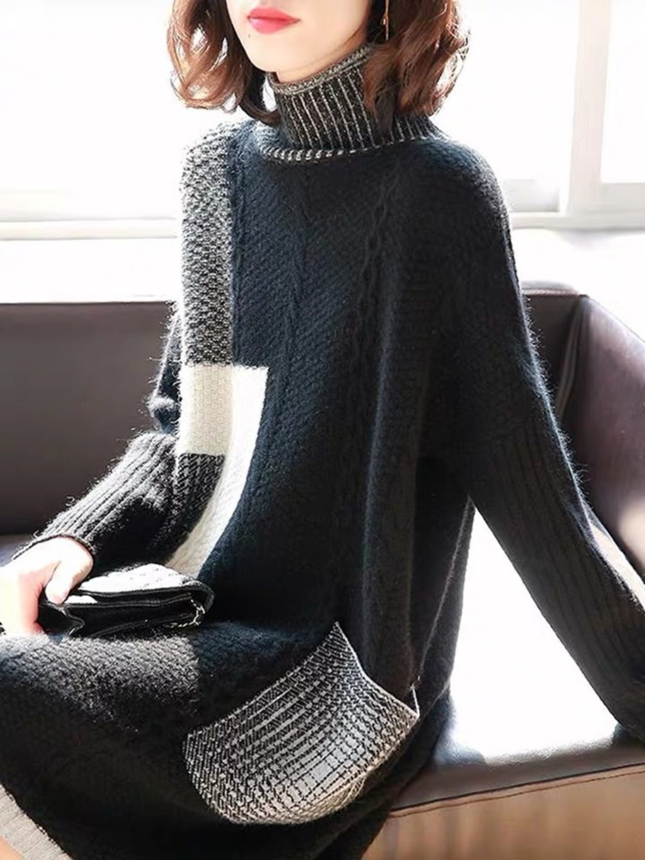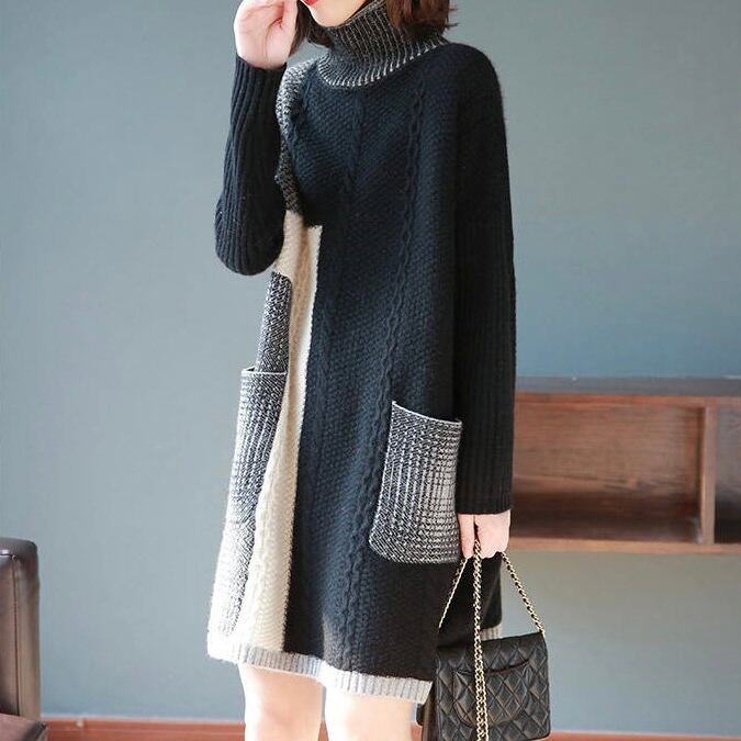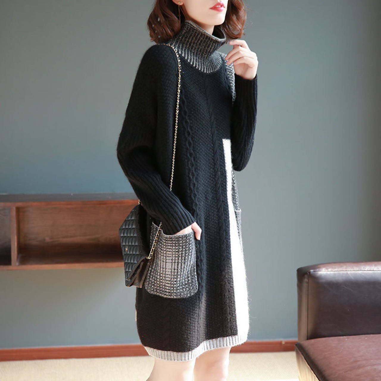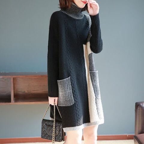 ワンピース ニットソー ワンピドレス 膝丈 膝上 袖あり 長袖 タートルネック スリム 細身 ストレート 厚手 大人可愛い きれいめ シンプル 大人 上品 お洒落 こなれ感 セクシー エレガント 春 秋 冬 20代 30代 40代 レディース デート お出かけ 休日 ホテル レストラン モテ 美脚 脚長 M L XL 2XL 3XL 黒 ブラック