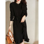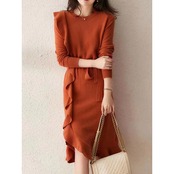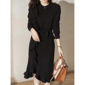 ワンピース ワンピドレス 膝丈 膝上 ミディアム丈 袖あり 7分袖 長袖 フレア スリム 細身 ウエストリボン サイドスリット 薄手 厚手 かわいい 大人可愛い きれいめ シンプル 大人 上品 おしゃれ 大人女子 こなれ感 ラフ ラブリー キュート セクシー エレガント 無地 春 秋 冬 10代 20代 30代 40代 レディース ママ オフィス OL デート お出かけ ホテル レストラン モテ 美脚 脚長 S M 色展開 黒 ブラック 赤 レッド ベージュ
