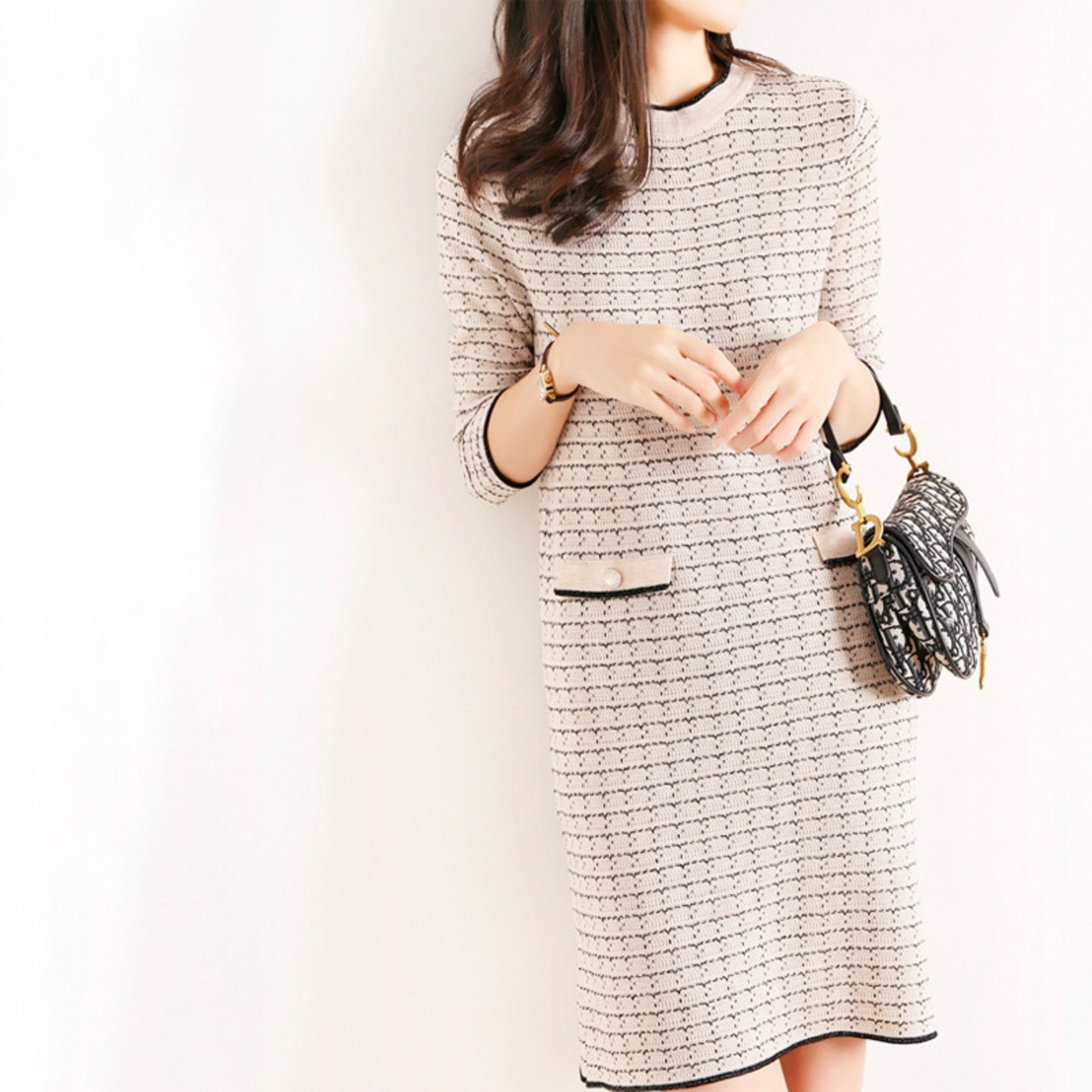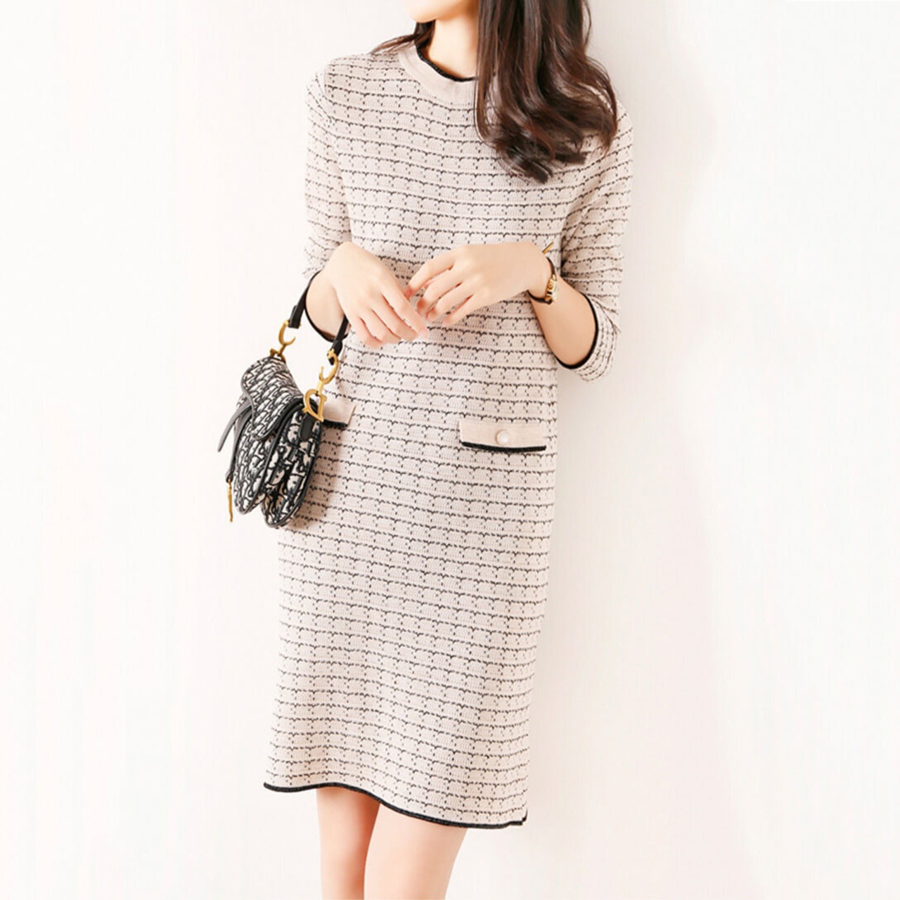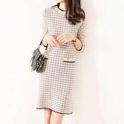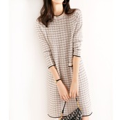 ワンピース 膝丈 ひざ丈 7分袖 長袖 スリム 細身 ストレート かわいい 大人可愛い きれいめ 大人 上品 エキゾチック 大人可愛い 大人女子 エレガント フォーマル チェック柄 春 入学式 入園式 2022 10代 20代 30代 レディース 女性用 ママ OL 通勤 通学 デート お出かけ 女子会 休日 パーティー イベント ホテル レストラン トレンド 流行 S M L XL 2XL 黒 ブラック 白 ホワイト モノトーン 春カラー