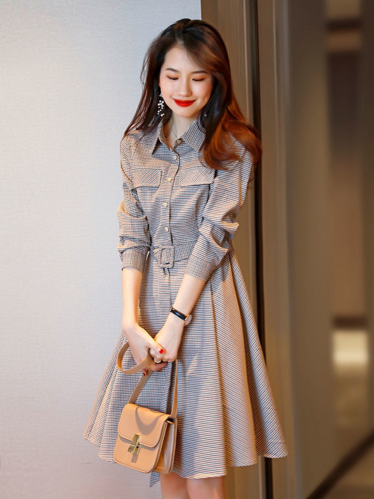 ワンピース シャツワンピース 膝丈 膝上 ミディアム丈 袖あり 5分袖 七分袖 襟付き フレア スリム 細身 Aライン ベルト かわいい 大人可愛い シンプル 大人 上品 おしゃれ レトロ 大人可愛い 大人女子 こなれ感 ラフ ラブリー キュート ガーリー セクシー グレンチェック 春 秋 冬 クリスマス バレンタイン 10代 20代 30代 レディース ママ OL 通勤 学生 通学 デート お出かけ 女子会 お泊まり 休日 旅行 ホテル レストラン 普段使い 韓国 韓国系 ファッション コーデ