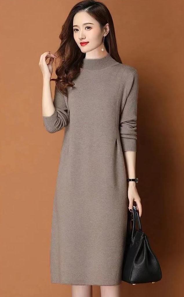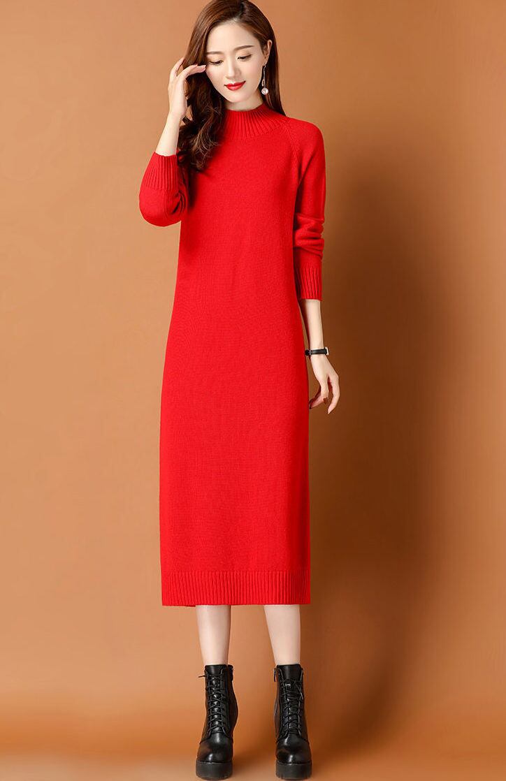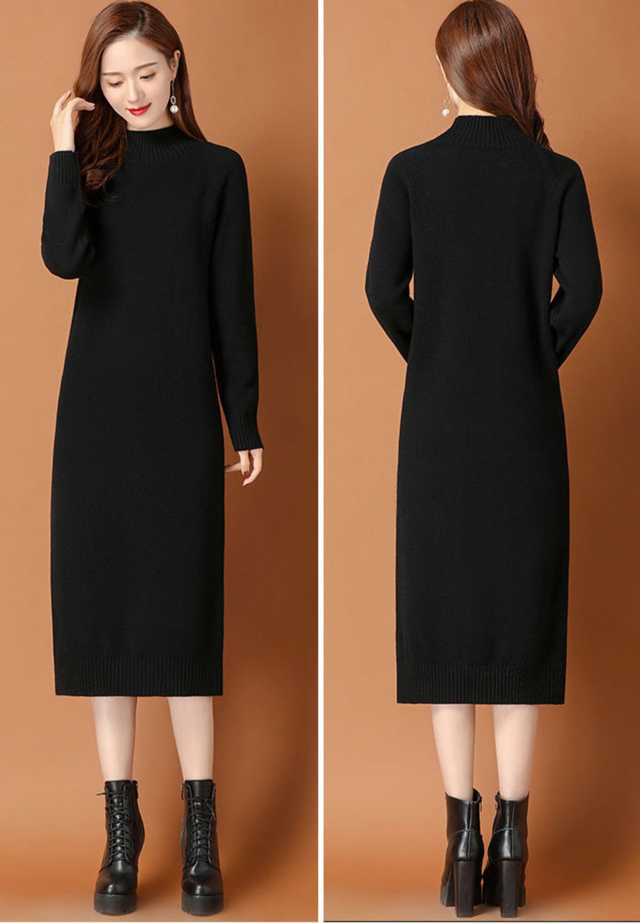 ワンピース 膝丈 ひざ丈 膝下 袖あり 長袖 ハイネック スリム タイト 細身 ストレート Iライン ニット きれいめ シンプル カジュアル 大人 上品 おしゃれ こなれ感 無地 秋 冬 10代 20代 30代 40代 50代 レディース 女性用 ママ マタニティ 学生 通学 お出かけ 公園デビュー 休日 旅行 普段使い ファッション 楽ちん 暖かい 防寒 M L XL 2XL 3XL 黒 ブラック 赤 レッド 灰色 グレー ベージュ