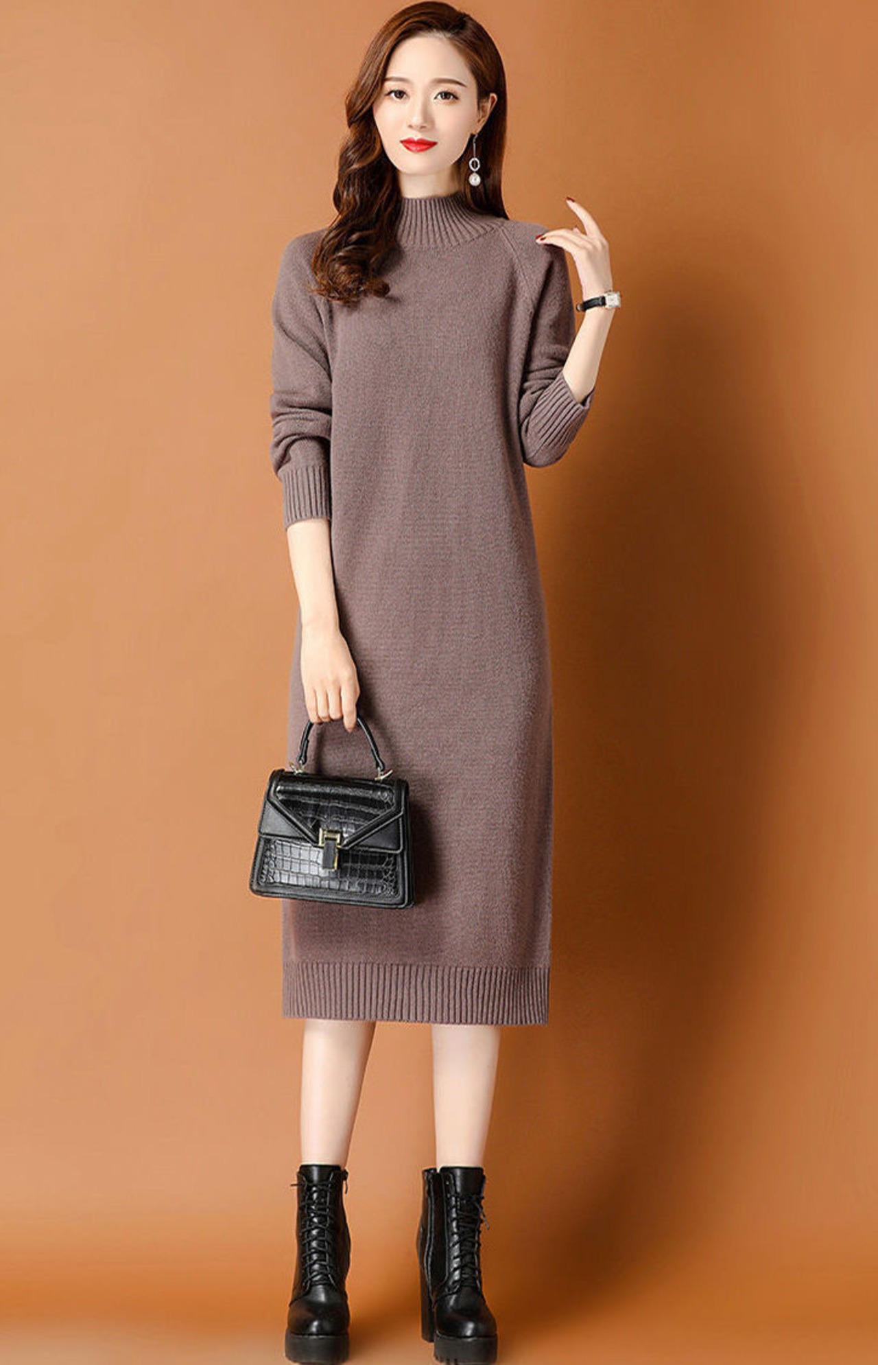 定番アイテムのハイネックニットワンピースは色違いで揃えたくなってしまいますね♪
