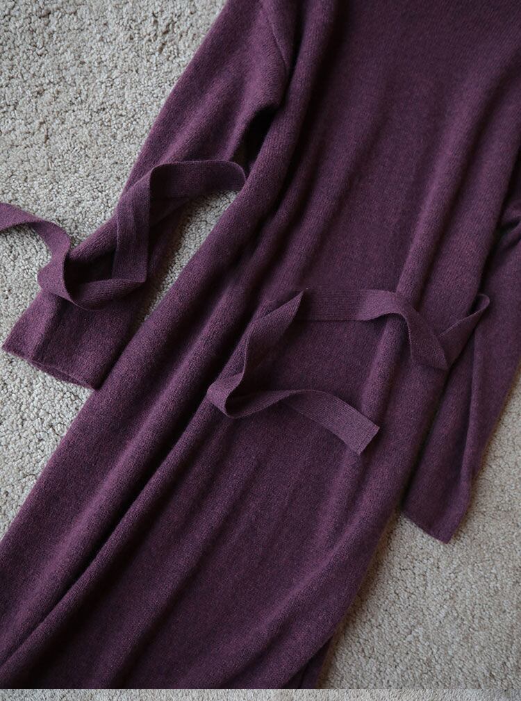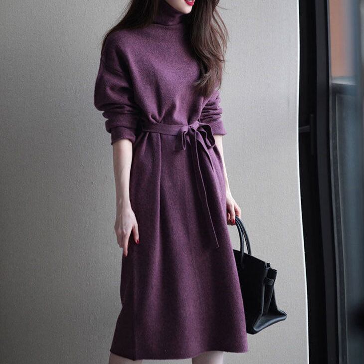 ワンピース 膝丈 ひざ丈 膝下 袖あり 長袖 タートルネック セミフレア Aライン リボン ウエストマーク ニット かわいい 大人可愛い きれいめ シンプル カジュアル 大人 上品 おしゃれ お洒落 大人女子 こなれ感 ラフ 無地 秋 冬 10代 20代 30代 40代 50代 レディース 女性用 ママ マタニティ OL 通勤 学生 通学 休日 デート お出かけ 休日 旅行 ファッション コーデ スタイル 楽ちん 暖かい S M L XL 紫 パープル