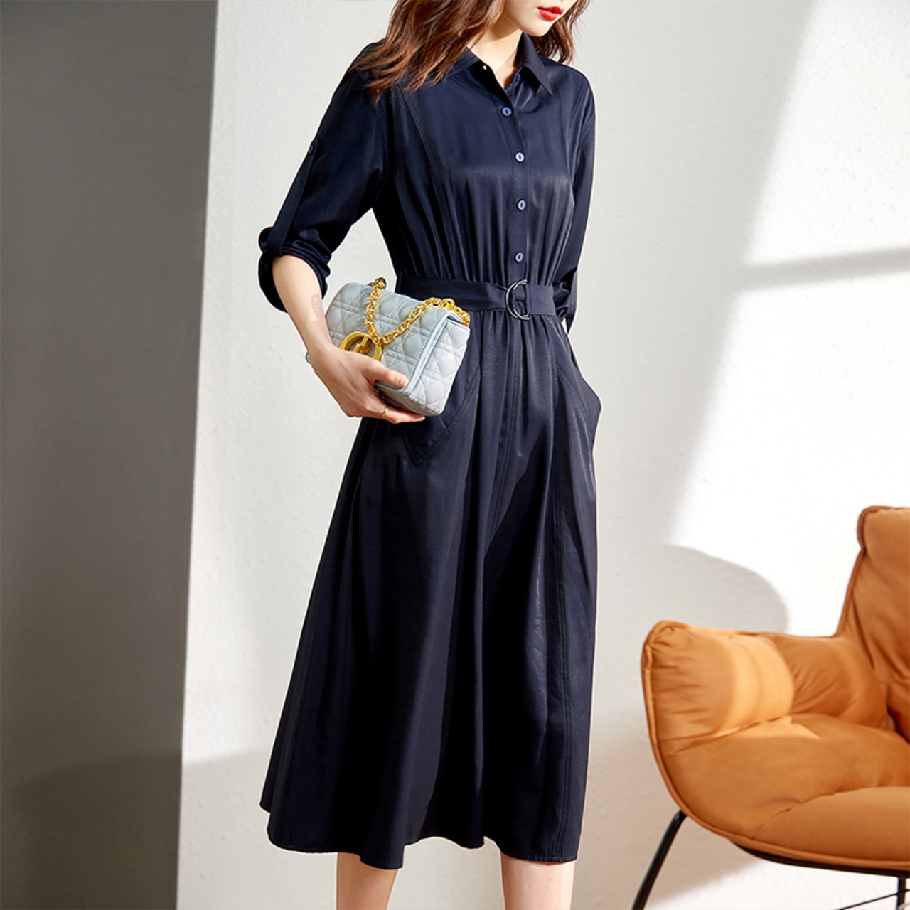 とろみ感があり大人な印象を与える一着。