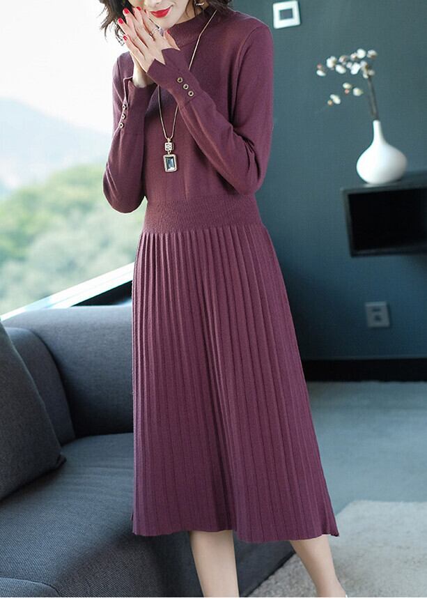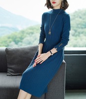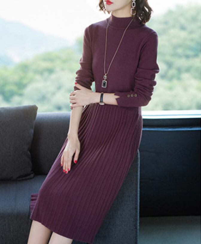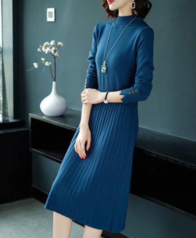 ワンピース 膝丈 ひざ丈 膝下 袖あり 長袖 ハイネック セミフレア スリム タイト Aライン 切り替えデザイン ニット かわいい 大人可愛い きれいめ シンプル 大人 上品 おしゃれ お洒落 大人可愛い 大人女子 無地 春 秋 冬 10代 20代 30代 40代 50代 レディース 女性用 ママ マタニティ オフィス ビジネス OL 通勤 学生 通学 デート お出かけ 女子会 M L XL 2XL 3XL 4XL 黒 ブラック 青 ブルー 紫 パープル