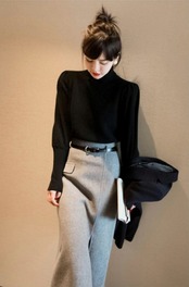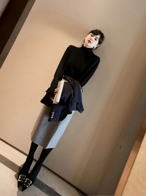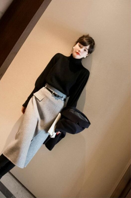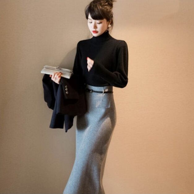 トップス スカート セットアップ ニットソー セーター ペンシルスカート 膝下 ミディアム丈 長袖 ハイネック Iライン ベルト スリット ハイウエスト 上下セット 2点セット ツーピース 大人可愛い きれいめ シンプル 大人 上品 おしゃれ お洒落 かっこいい 大人女子 エレガント モダン フォーマル 無地 秋 冬 20代 30代 レディース ビジネス OL 通勤 着回し 美脚 脚長 S M L XL 黒 ブラック 灰色 グレー バイカラー モノトーン