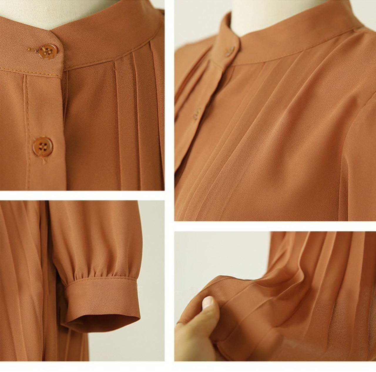 ふんわりとしたシフォン素材に落ち着いたカラーで大人可愛い印象です。