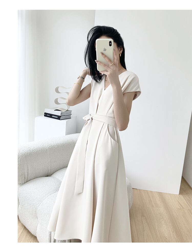 ワンピース 膝下 ミモレ ミモレ丈 袖あり フレンチスリーブ Vネック スリム ウエストリボン ハイウエスト きれいめ シンプル 大人 上品 おしゃれ 大人女子 こなれ感 クール セクシー エレガント とろみ感 無地 夏 2022 20代 30代 レディース 女性用 OL デート お出かけ 女子会 休日 パーティー イベント リゾート 旅行 ホテル レストラン モテ 美脚 脚長 定番