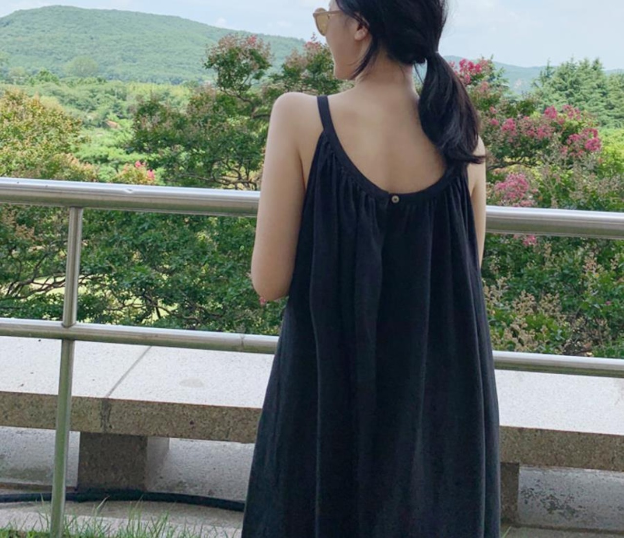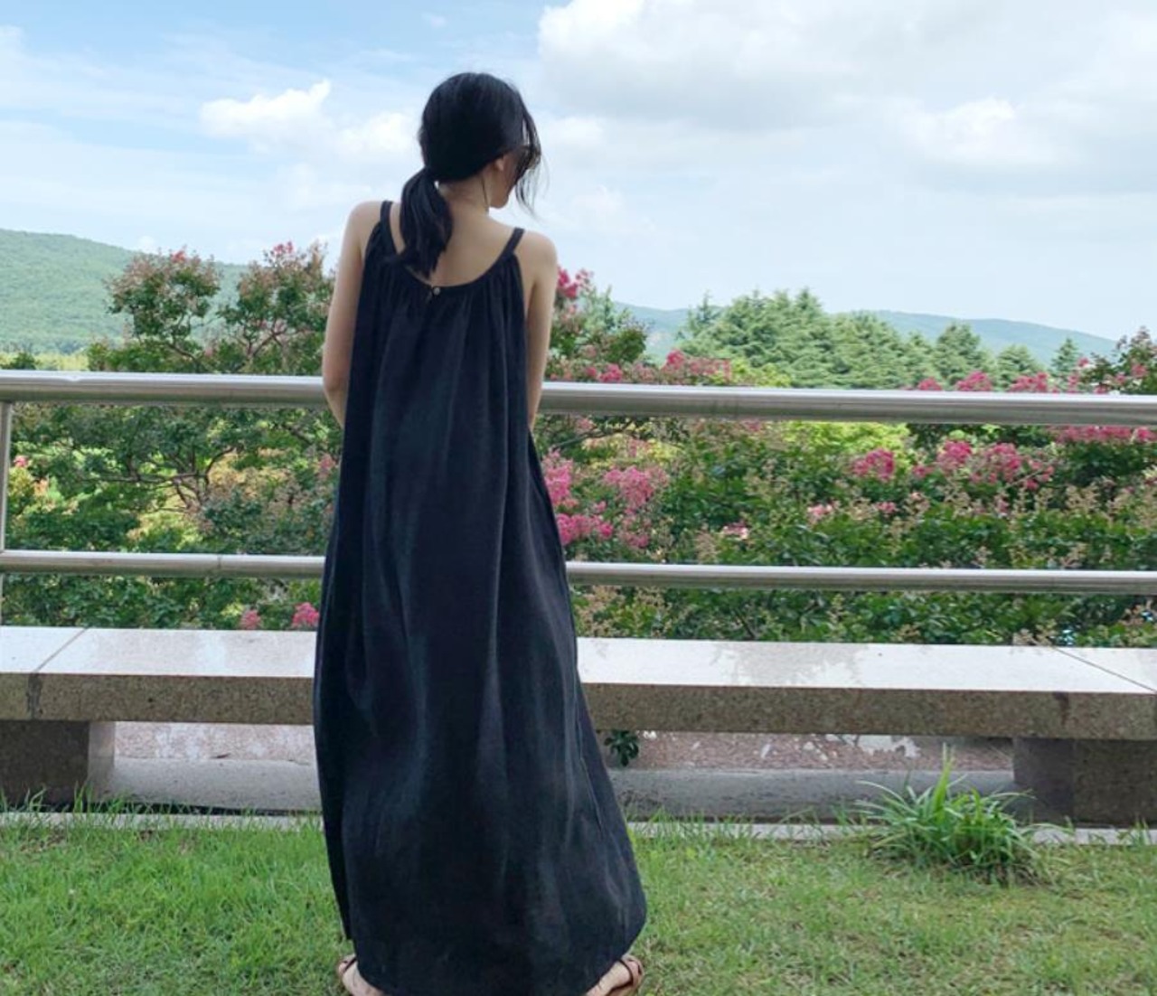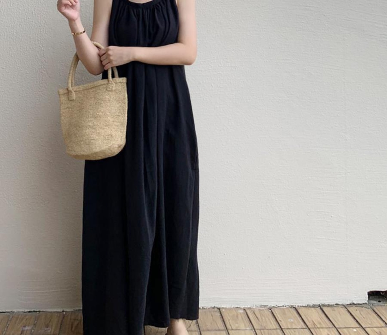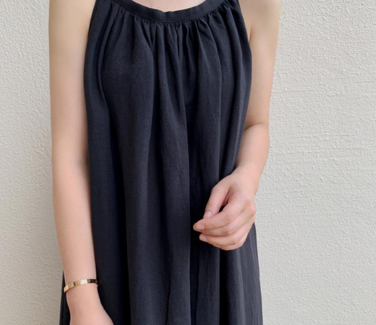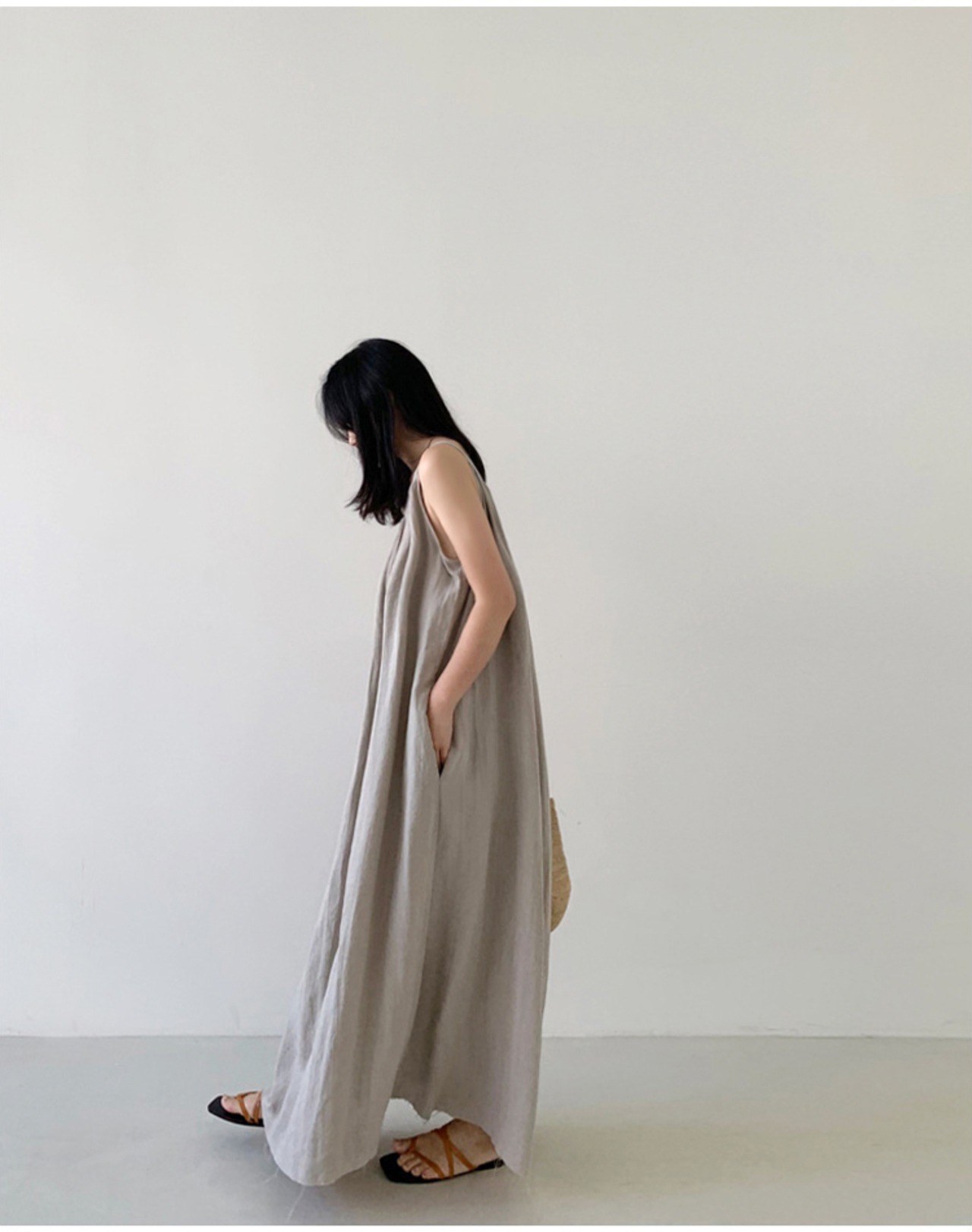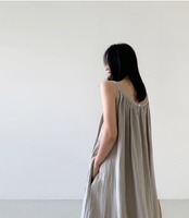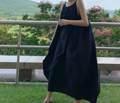 シンプルなマキシ丈ののノースリーブワンピースです。