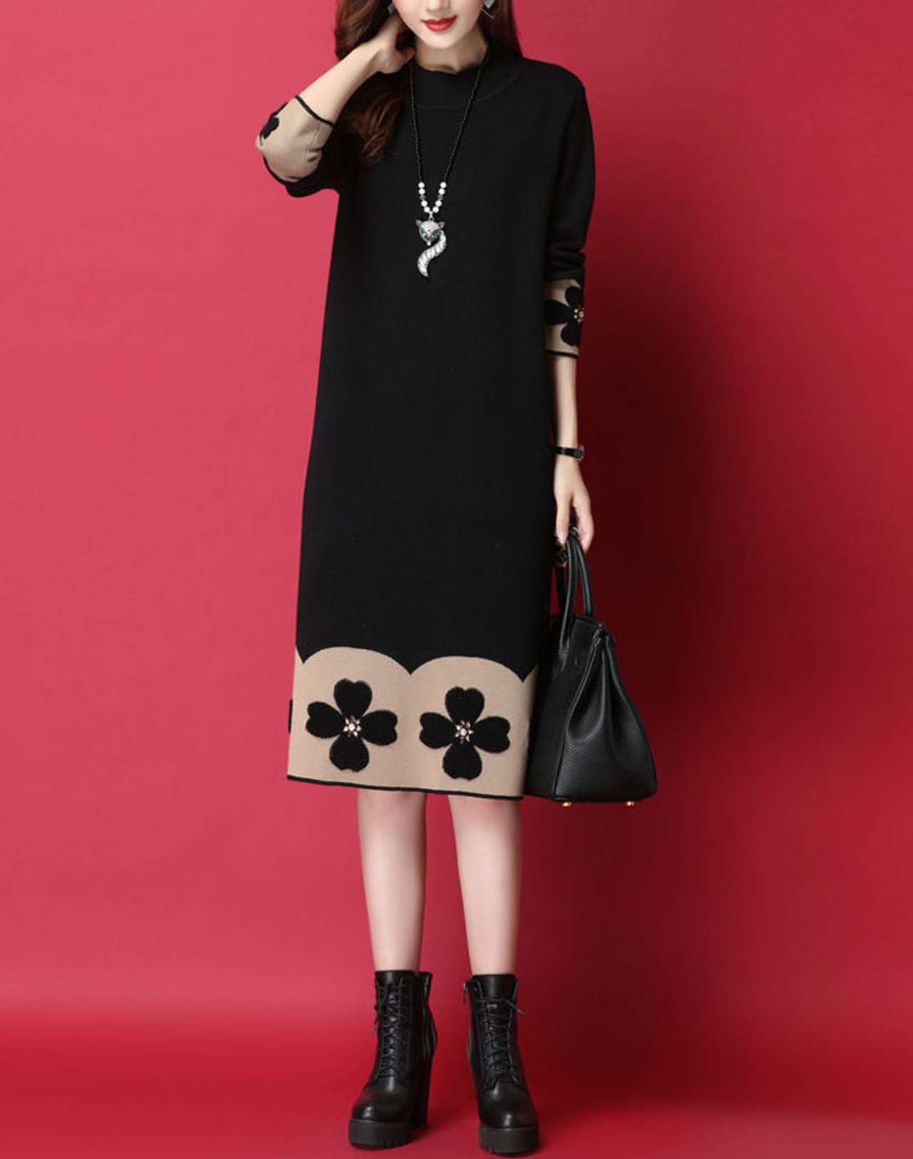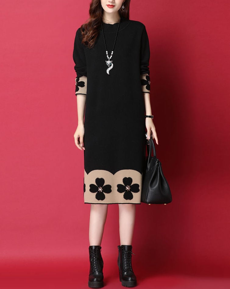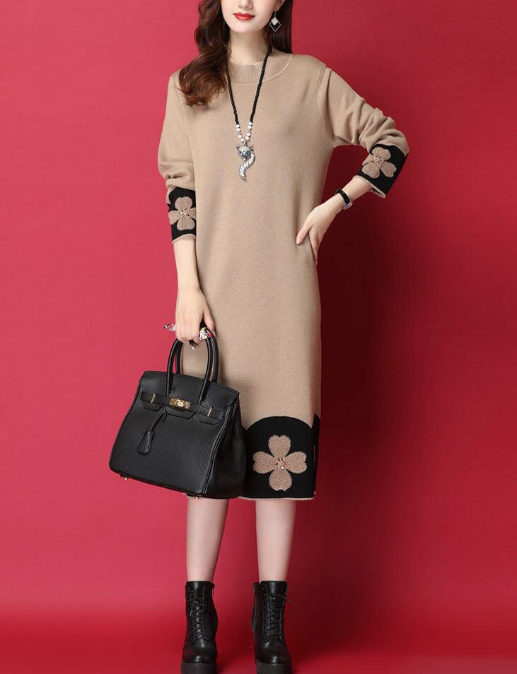 ワンピース 膝丈 ひざ丈 膝下 袖あり 長袖 Uネック ラウンドネック ハイネック ストレート Iライン ニット 大人可愛い きれいめ シンプル カジュアル 大人 上品 おしゃれ お洒落 ラフ 秋 冬 20代 30代 40代 50代 レディース 女性用 ママ マタニティ 通勤 学生 通学 お出かけ ファッション コーデ スタイル 楽ちん 暖かい 防寒 体系カバー S M L XL 2XL 3XL ゆったり 黒 ブラック 茶色 ブラウン