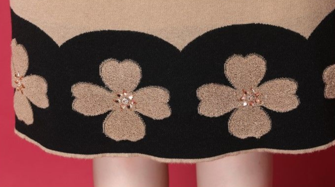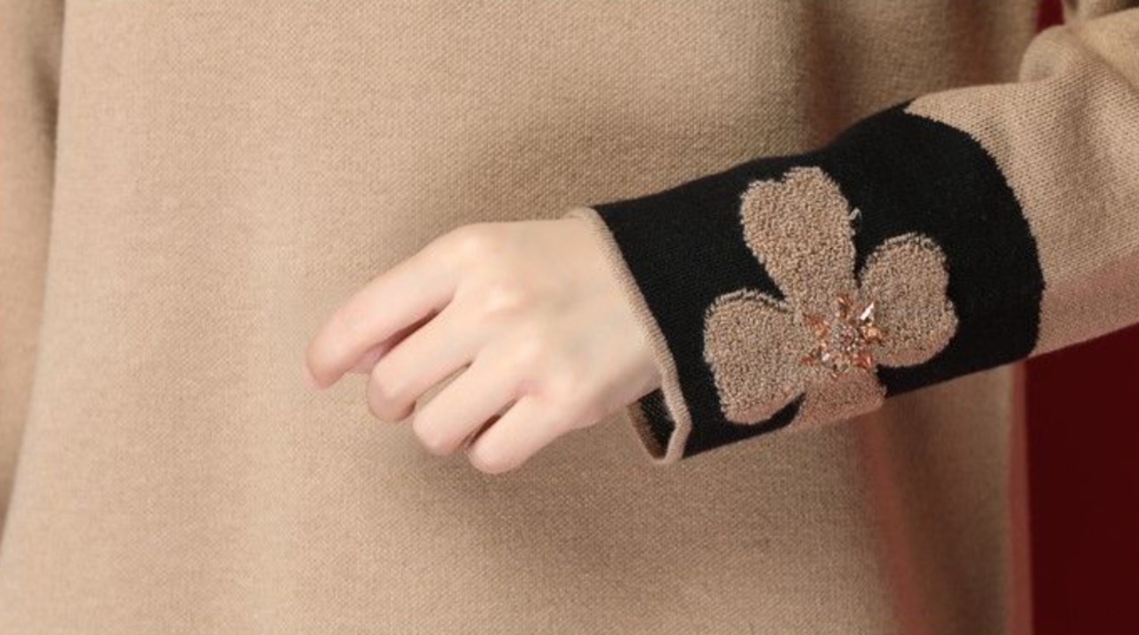 袖と裾の切り替えが印象的なニットワンピース。