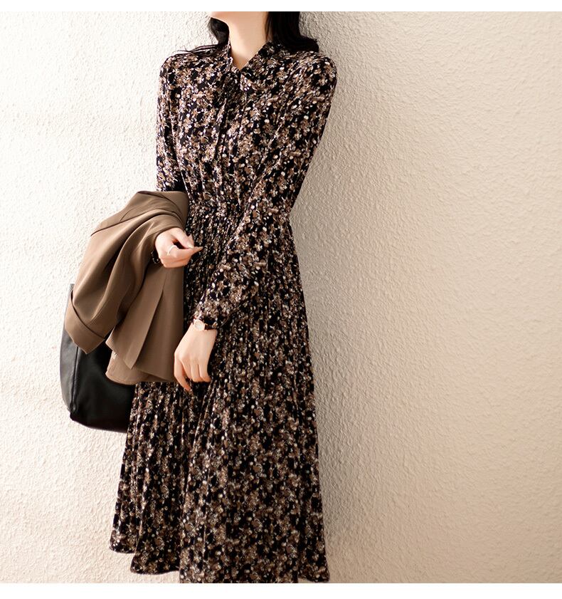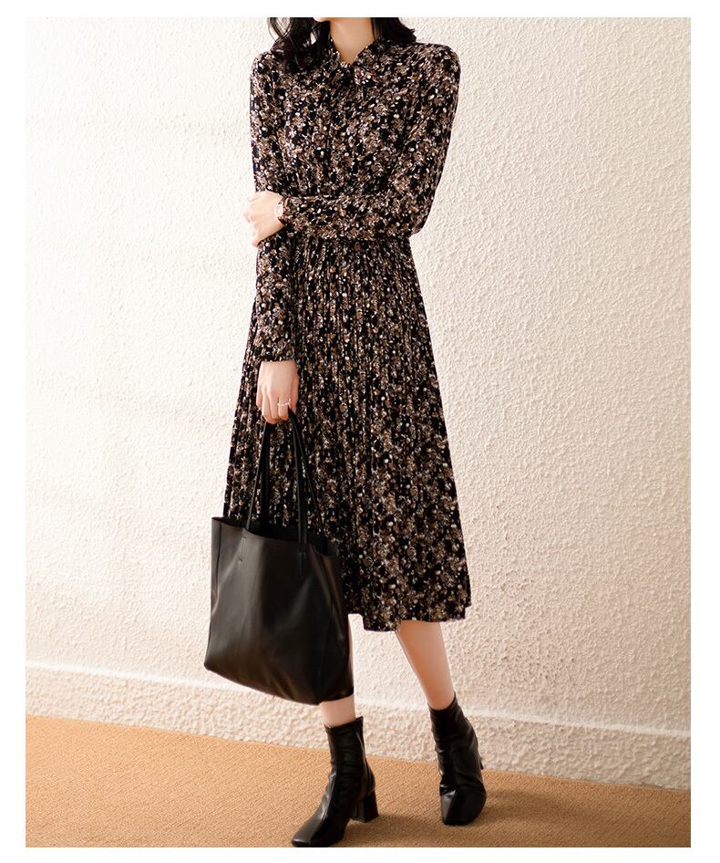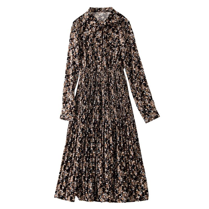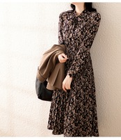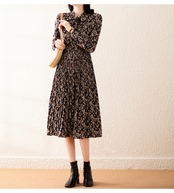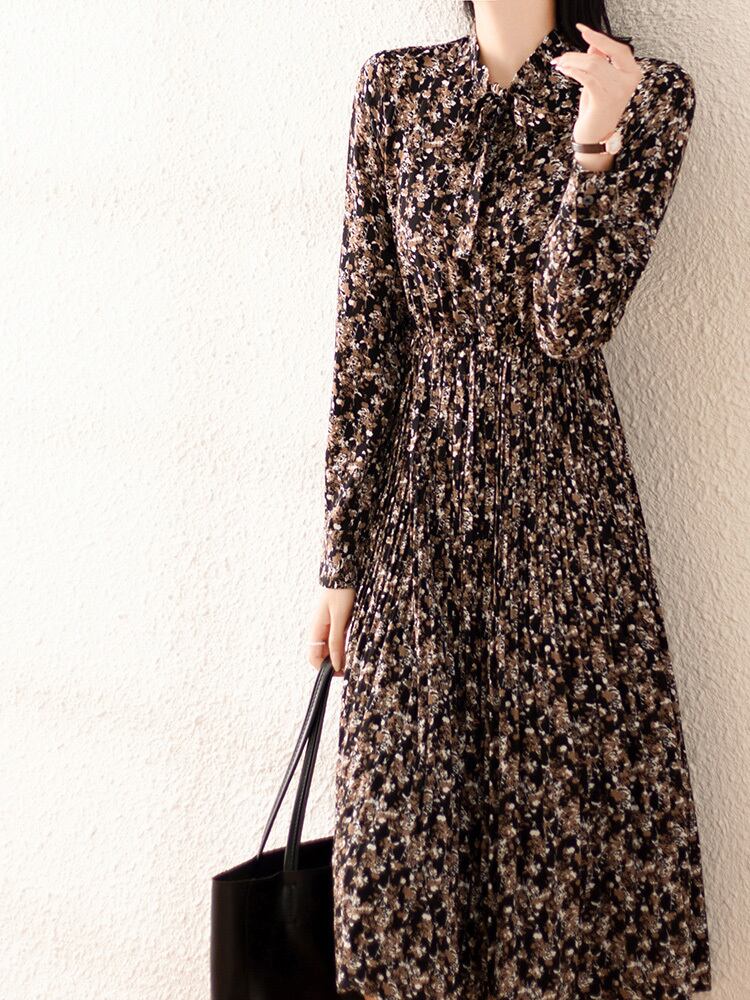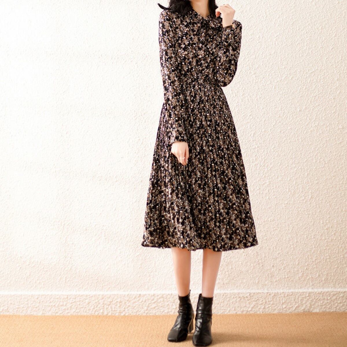 ワンピース フレアワンピース 膝下 ミモレ ミモレ丈 袖あり 長袖 クルーネック フレア Aライン Iライン プリーツ リボン ハイウエスト ウエストゴム ポリエステル かわいい 大人可愛い 大人 上品 おしゃれ お洒落 レトロ 大人可愛い 大人女子 ラブリー キュート ガーリー エレガント 柄 小花柄 総柄 春 秋 10代 20代 30代 レディース デート お出かけ 女子会 休日 普段使い モテ 脚長 M L XL 2XL 3XL 4XL 大きいサイズ 大きい 大きめ ビッグサイズ 黒 ブラック