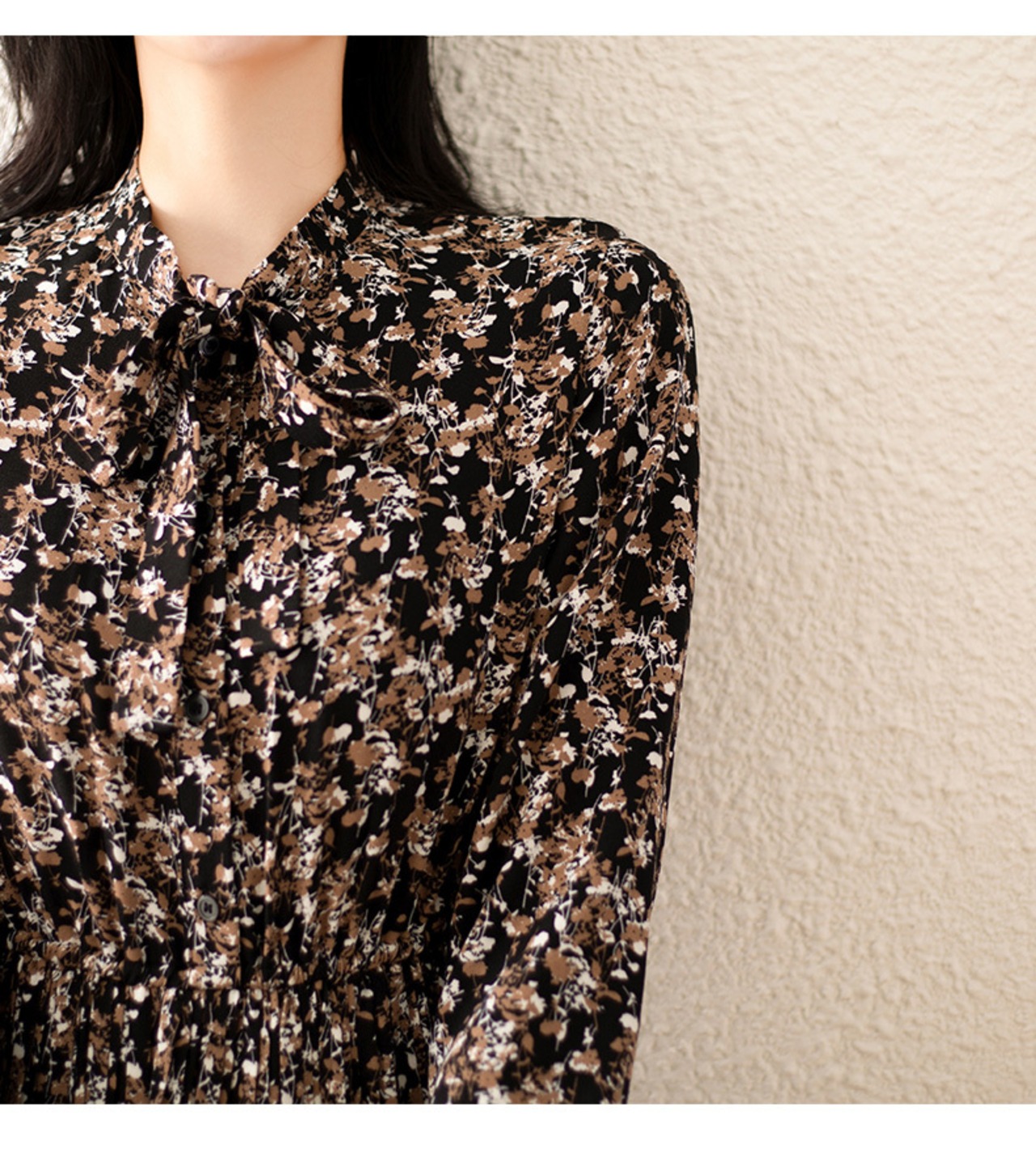 控えめにあしらわれたボウタイがレトロな印象の一着です。