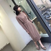 リボン紐でウエストの調整ができる、大人カジュアルなニットワンピース♪