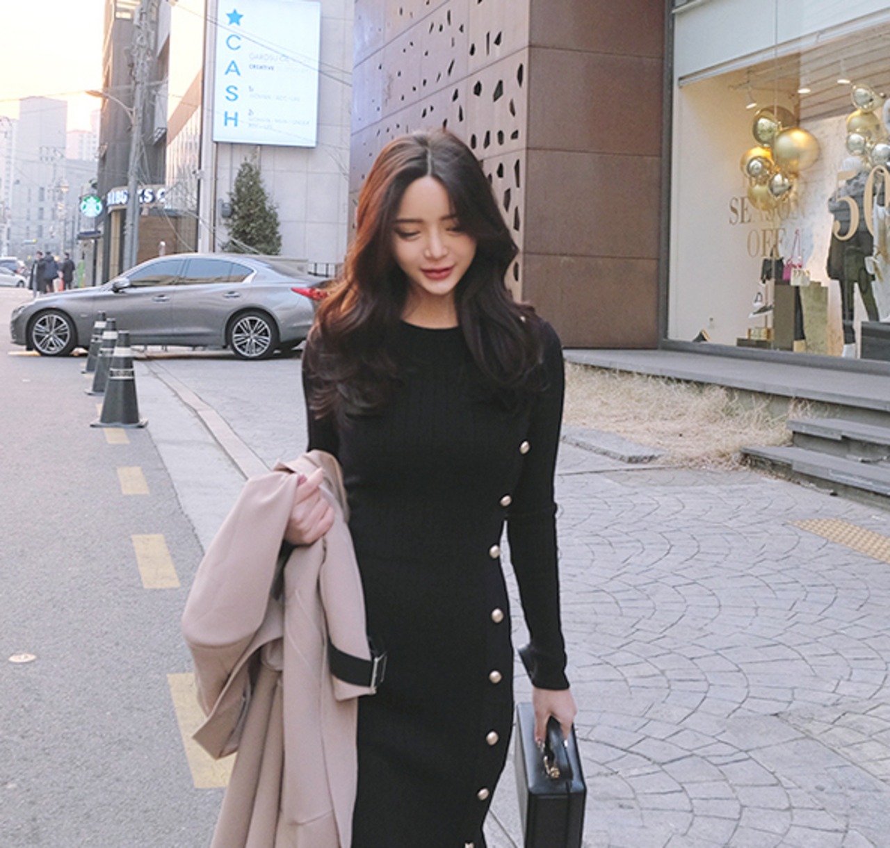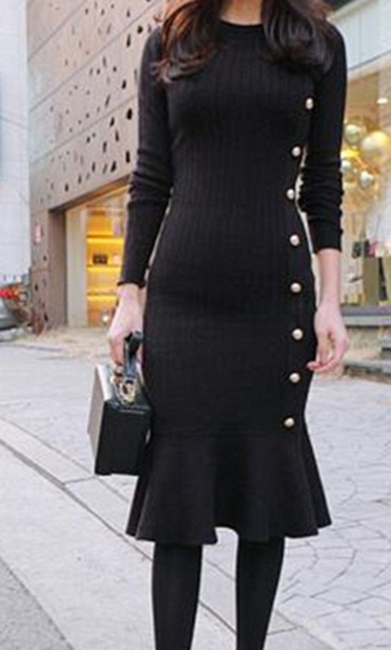 ワンピース 膝丈 ひざ丈 膝下 袖あり 長袖 ラウンドネック スリム タイト 細身 ペプラム マーメイド ニット 大人可愛い きれいめ シンプル 大人 上品 おしゃれ お洒落 大人女子 エレガント 秋 冬 春 20代 30代 40代 レディース 女性用 ビジネス OL 通勤 学生 通学 デート お出かけ 女子会 お泊まり パーティー イベント ホテル レストラン モテ トレンド 流行 S M L XL 2XL 3XL 4XL 黒 ブラック