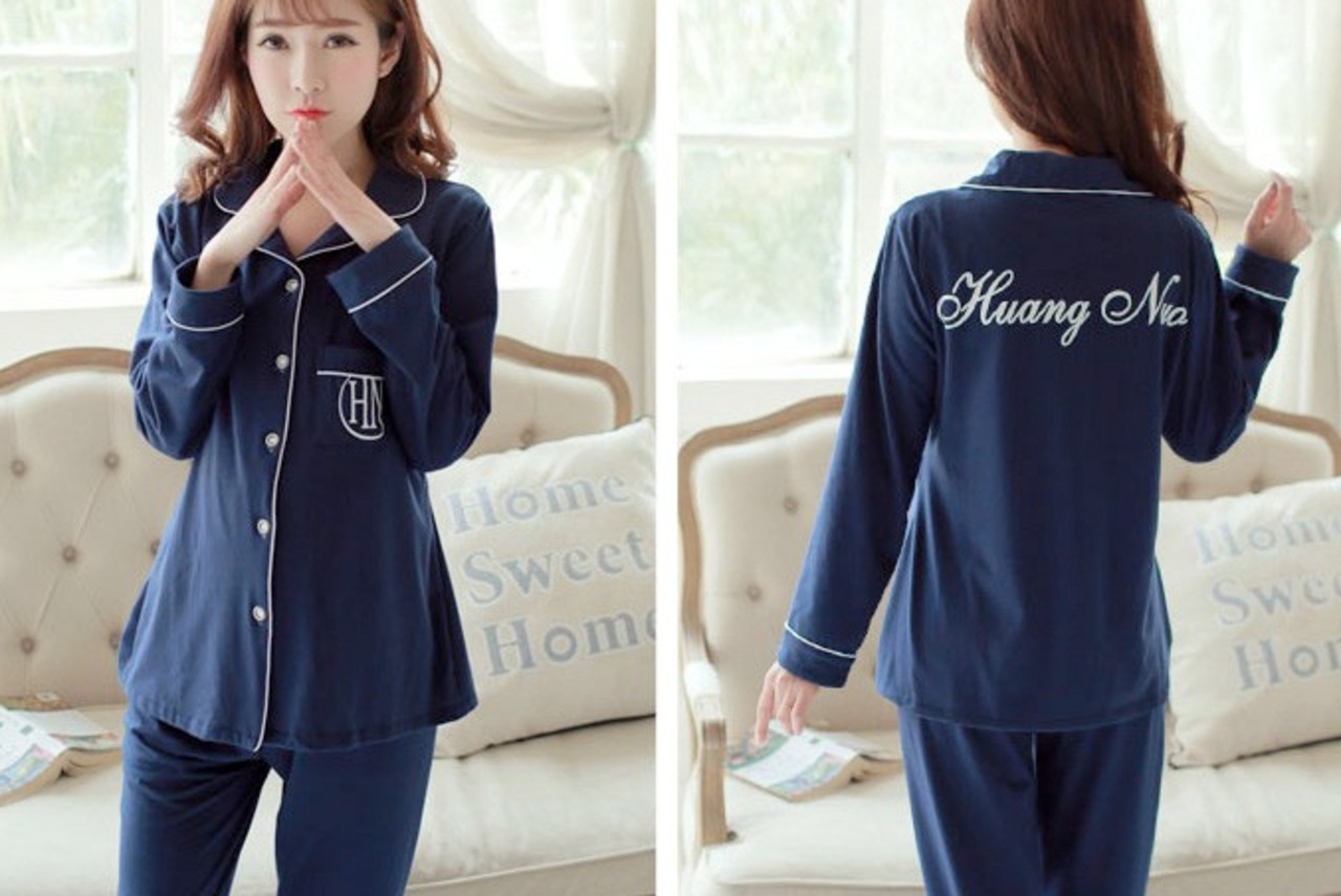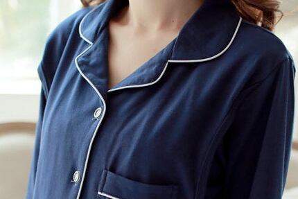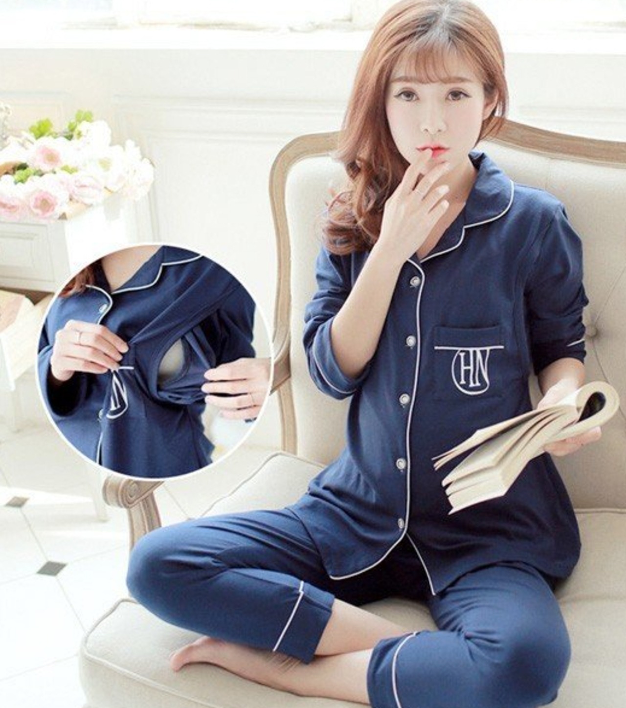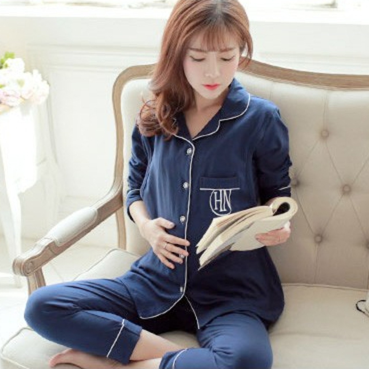 マタニティパジャマ 授乳口付き 出産準備 プレママ 長袖 襟付き 前開き ウエストゴム アジャスター付き 綿 上下セット 大人可愛い きれいめ シンプル 大人 ナチュラル パイピング オールシーズン 産前 産後 20代 30代 40代 レディース ママ マタニティ 入院中 授乳服 検診 定番 ネイビー
