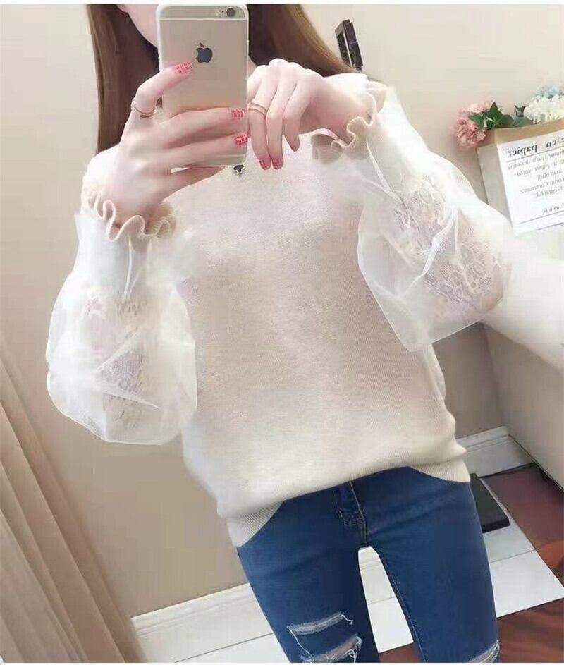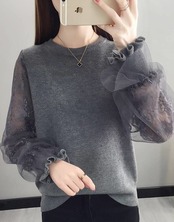 トップス カットソー ニットソー 袖あり 長袖 ボリューム袖 ラウンドネック レース チュール 大人可愛い カジュアル 大人 おしゃれ お洒落 かっこいい ラブリー キュート ガーリー エレガント 主役級 存在感 春 秋 10代 20代 30代 レディース 女性用 ママ 女の子 OL 通勤 学生 通学 デート お出かけ 女子会 レストラン ファッション コーデ スタイル モテ トレンド 流行 S M L XL 白 ホワイト 黒 ブラック 灰色 グレー カーキ ベージュ 春カラー ニュアンスカラー