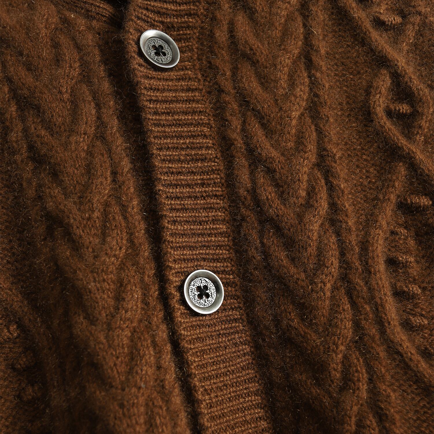 暖かみのある伝統的なアラン模様がレトロな印象で大人可愛い一着です。