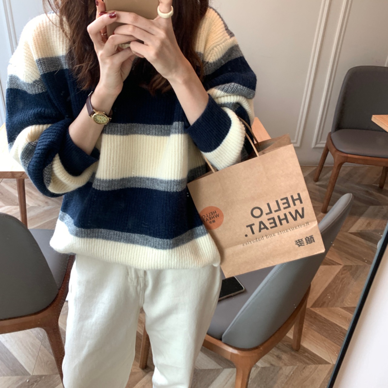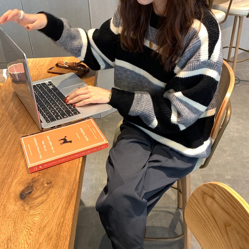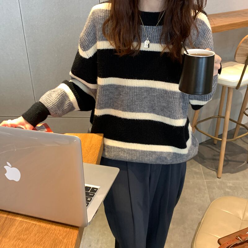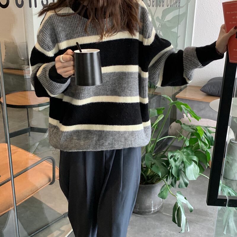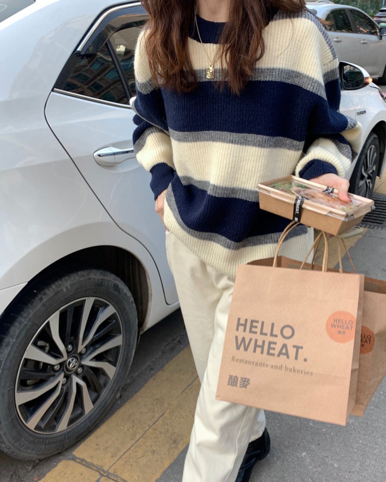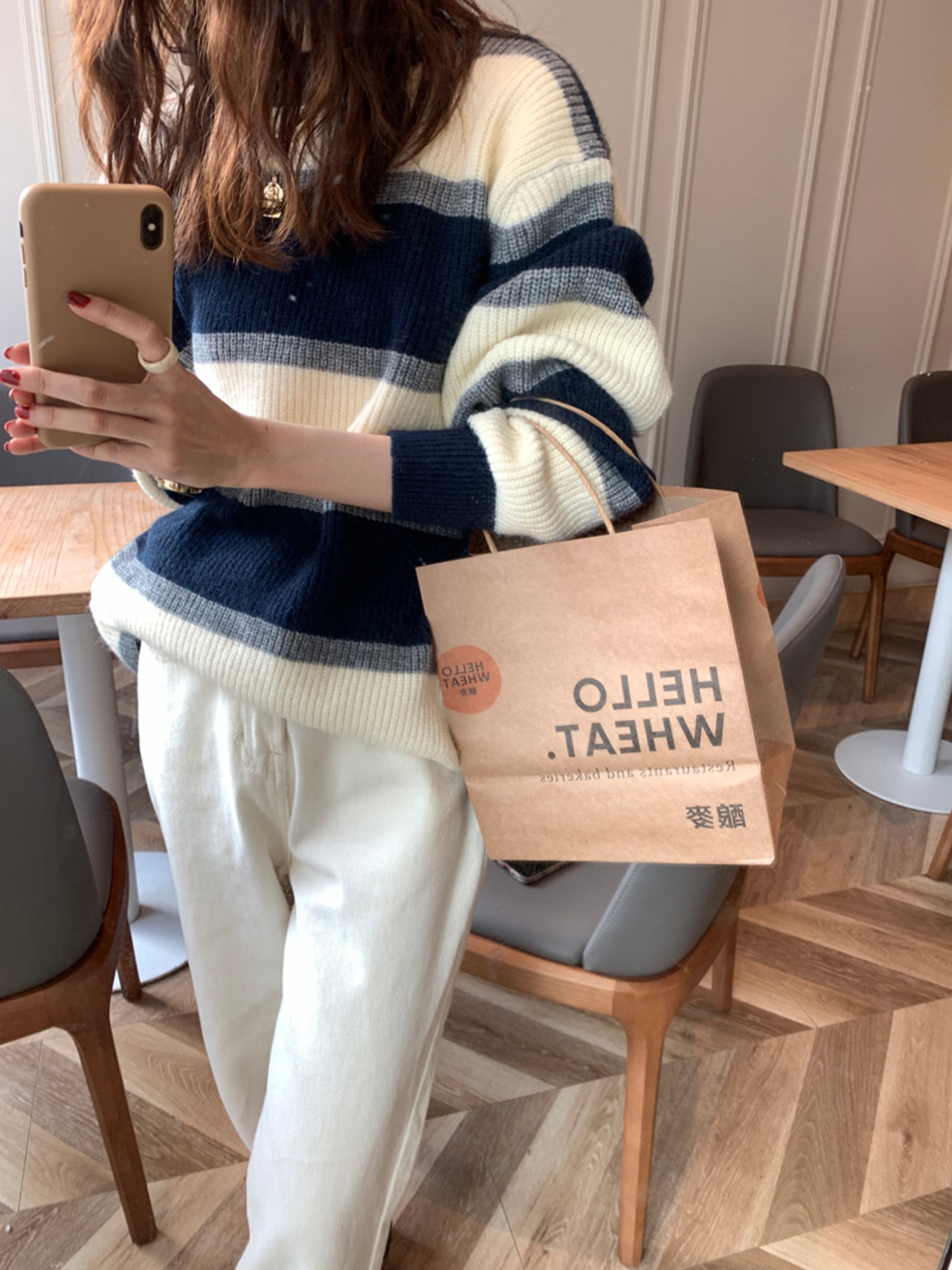 ゆったりとしたシルエットが可愛いボーダーニット。