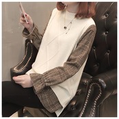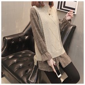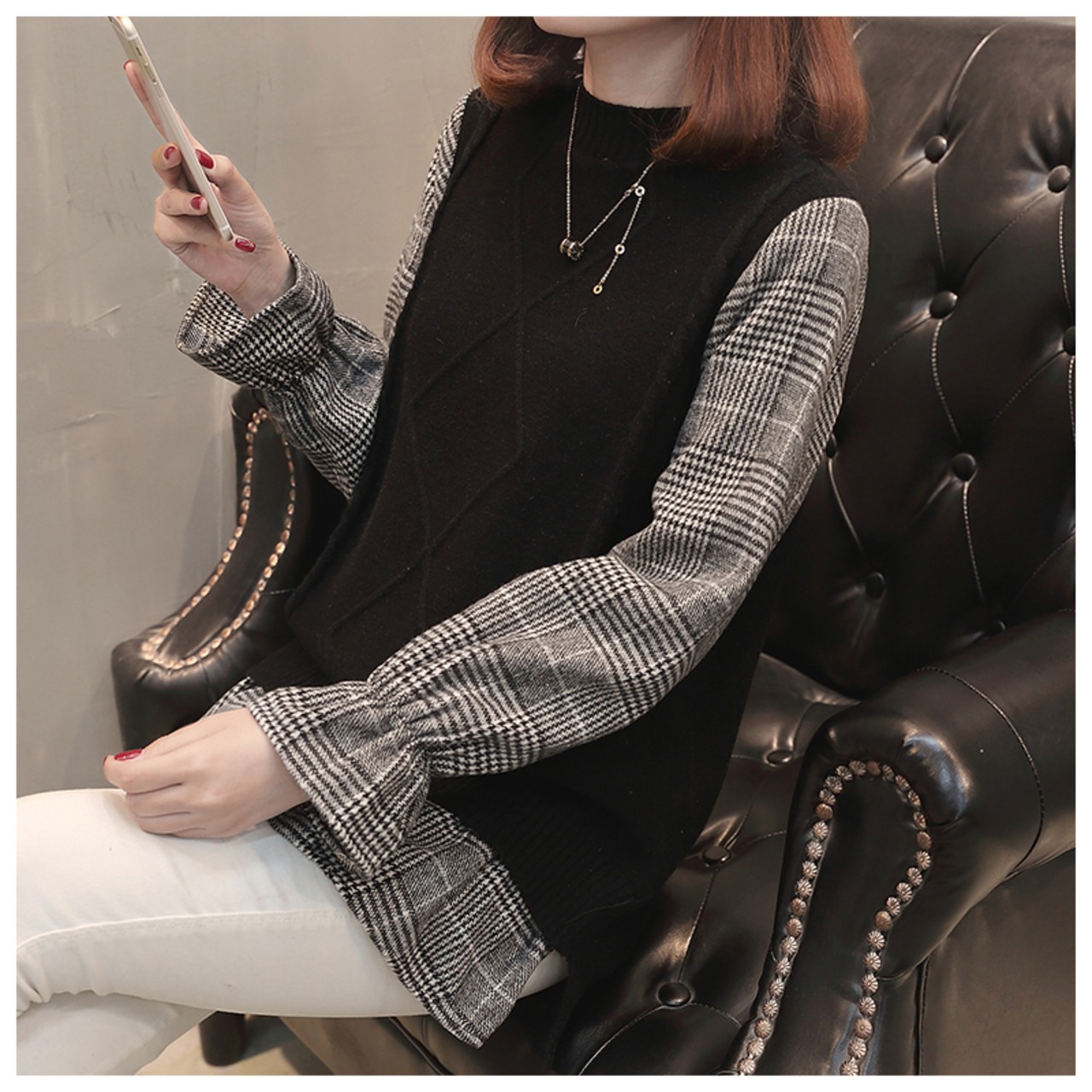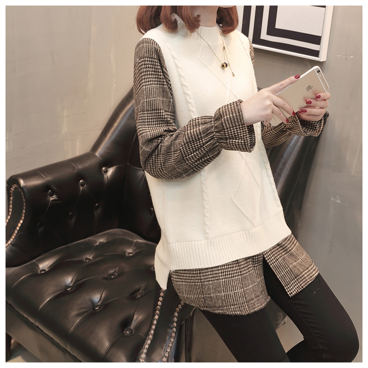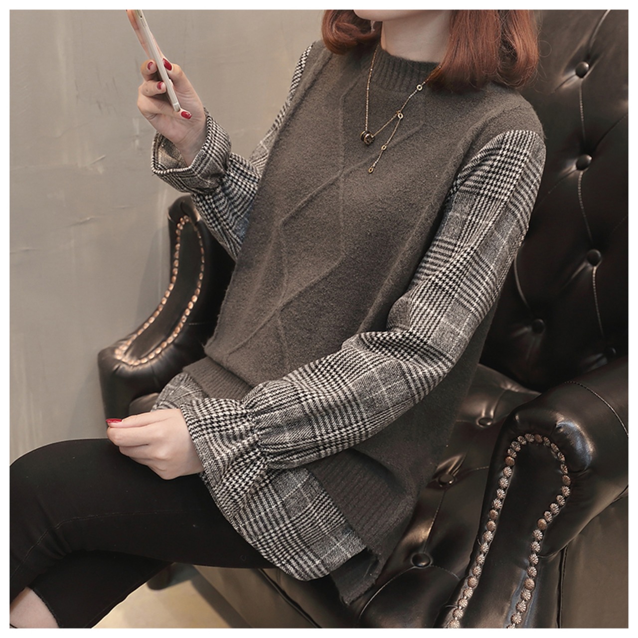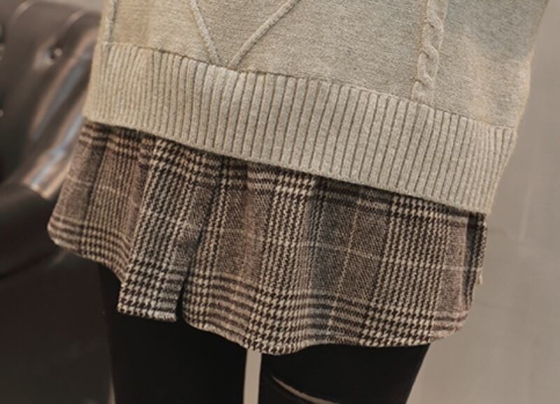 トップス セーター 袖あり 長袖 クルーネック ドッキング ケーブルニット ニット かわいい 大人可愛い カジュアル 大人 上品 おしゃれ お洒落 レトロ 大人女子 こなれ感 ラフ ボーイッシュ キュート ガーリー エレガント チェック柄 グレンチェック 秋 冬 10代 20代 レディース 学生 通学 デート お出かけ 女子会 休日 普段使い 重ね着 ファッション コーデ スタイル モテ 定番 フリーサイズ ゆったり ゆる ホワイト ブラック グレー カーキ