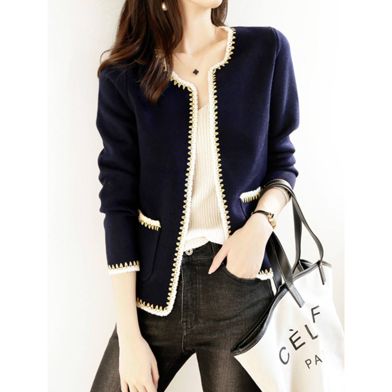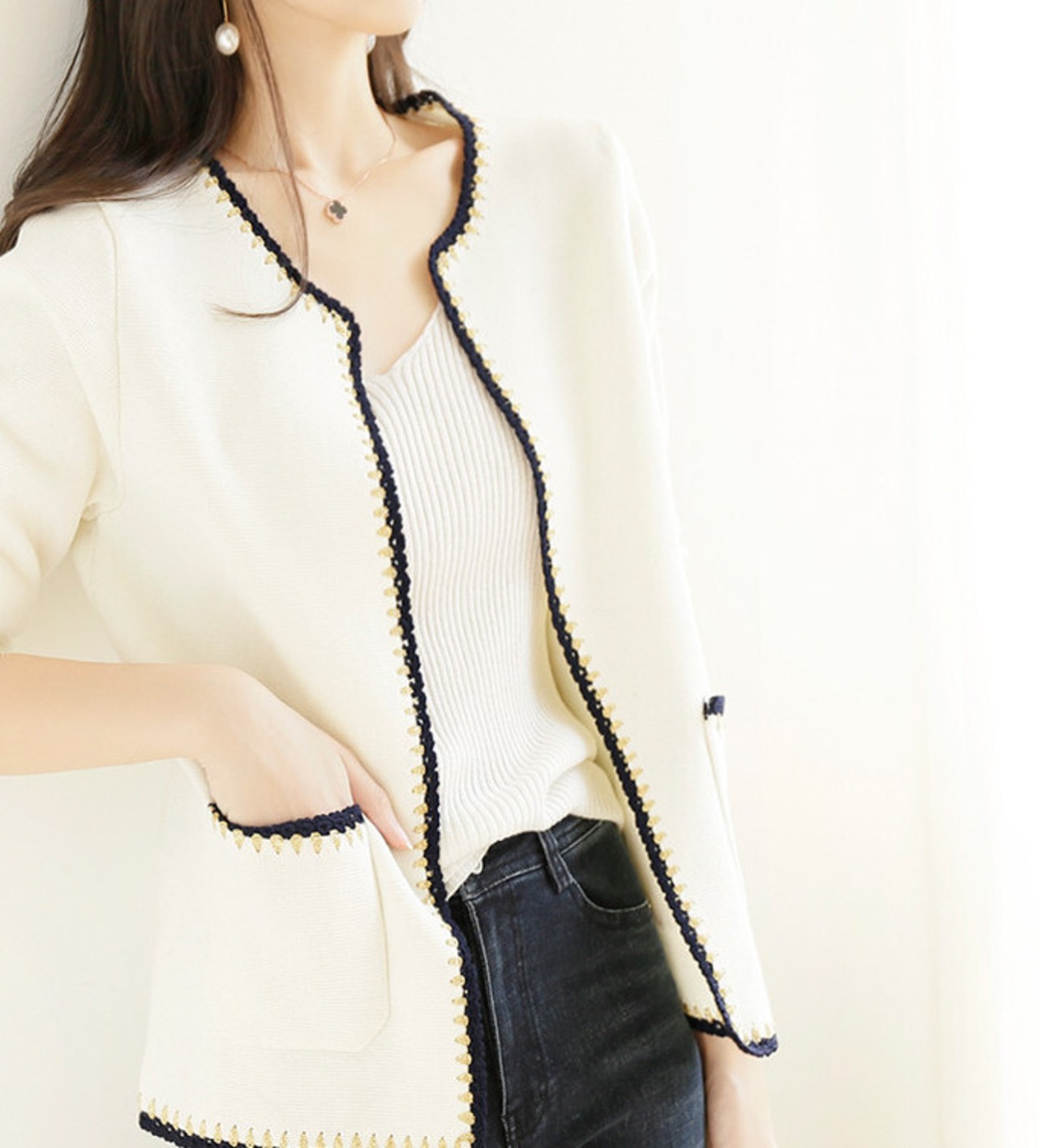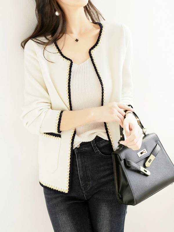 ベーシックカラーのジャケット風カーディガンは幅広いシーンで大活躍の予感♪