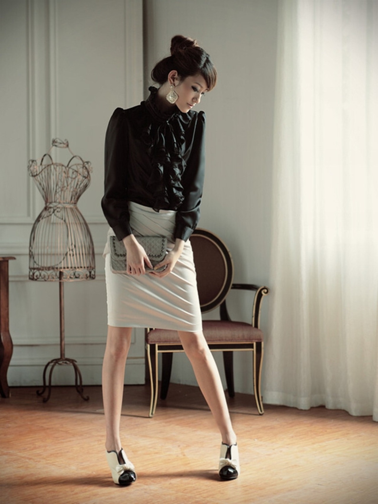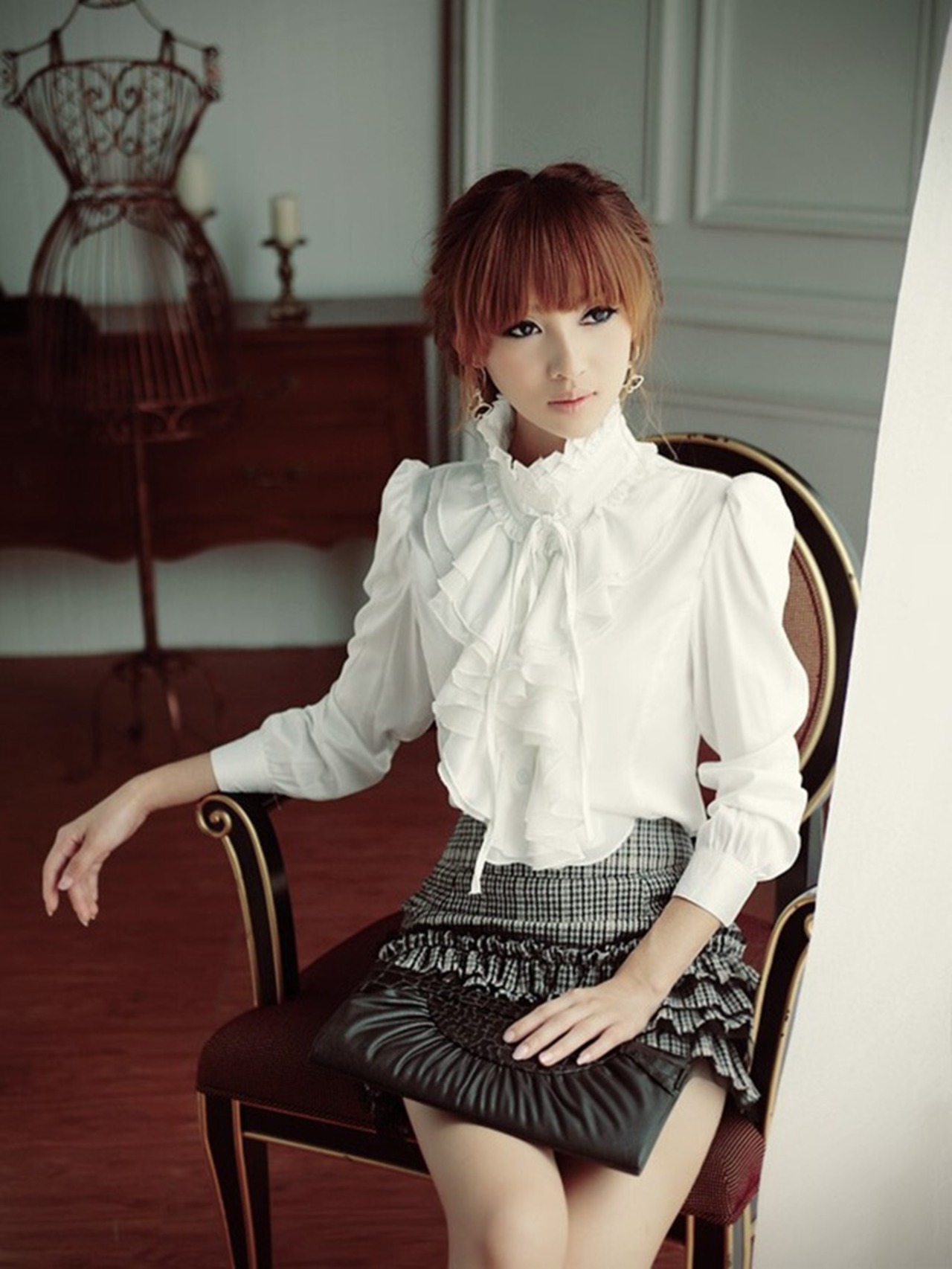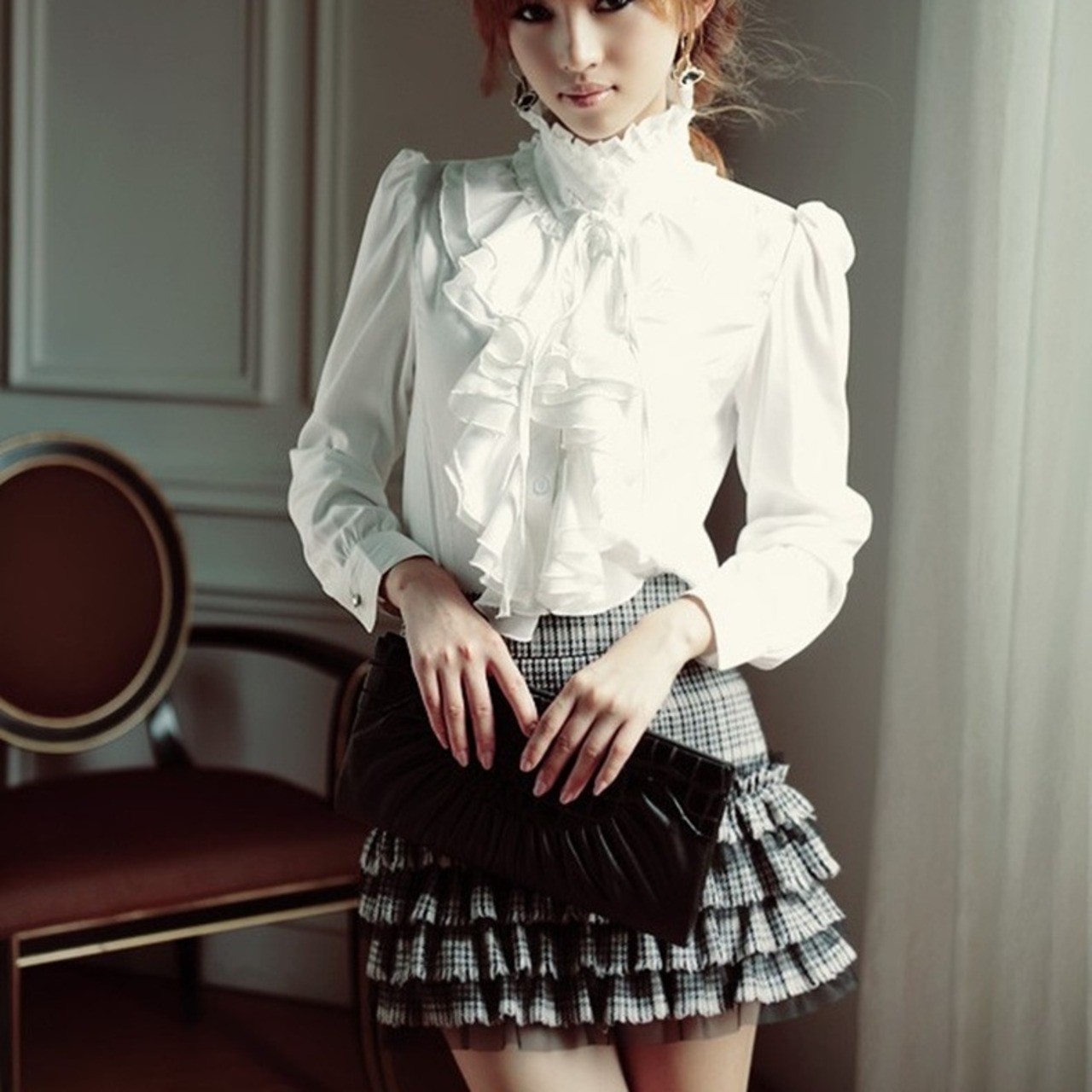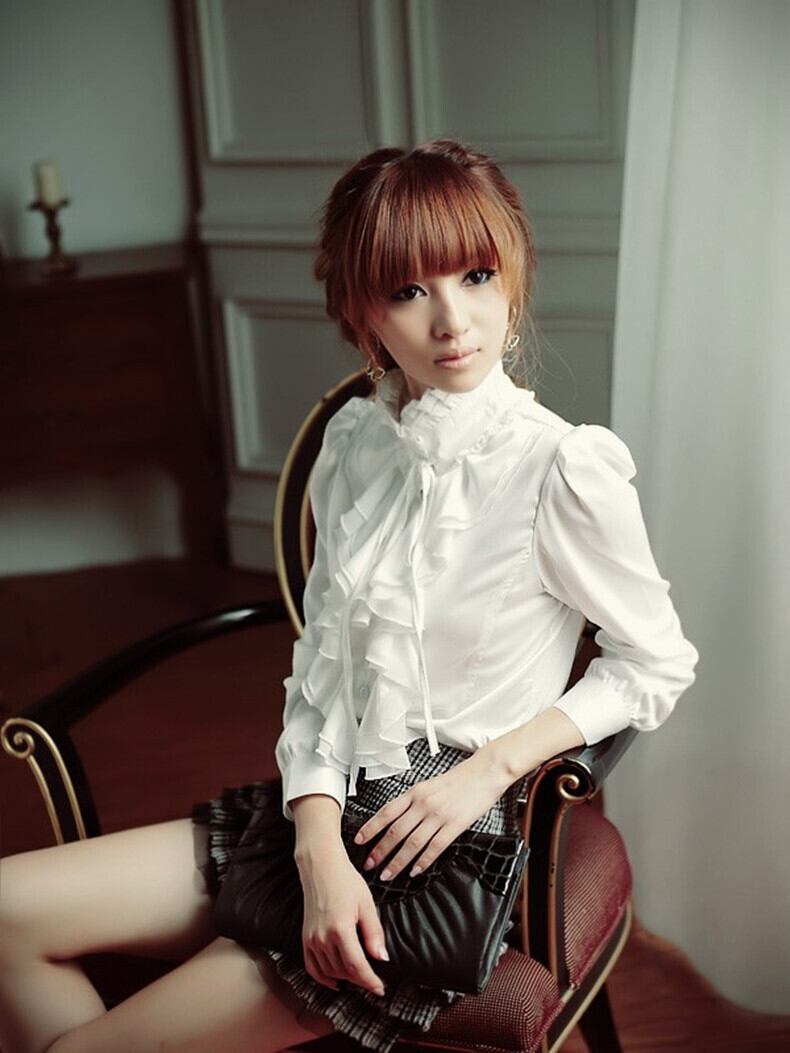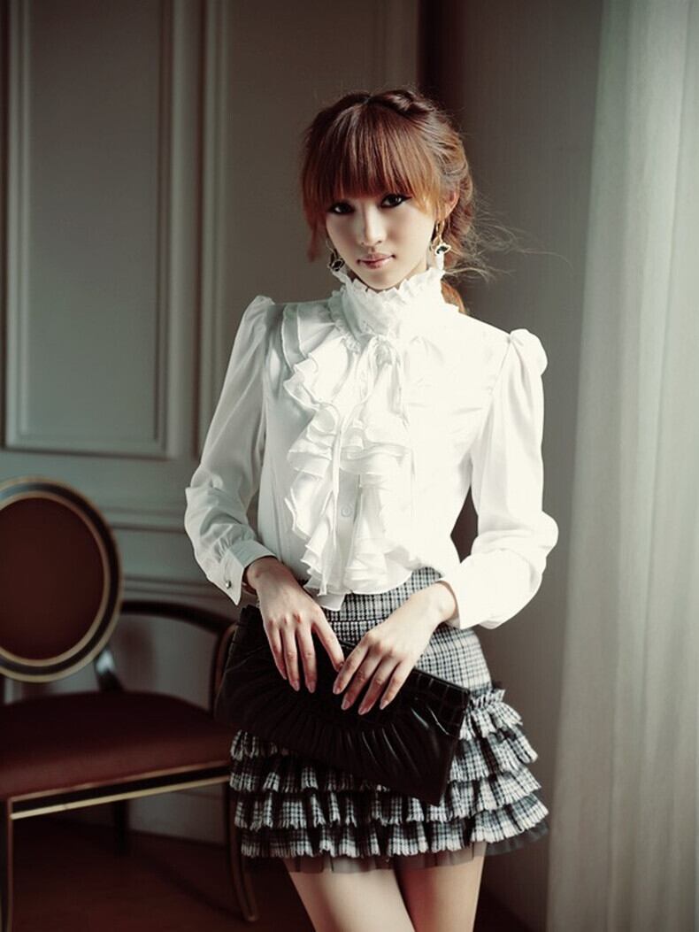 大振りなフリルが目を引くレトロなシャツ。