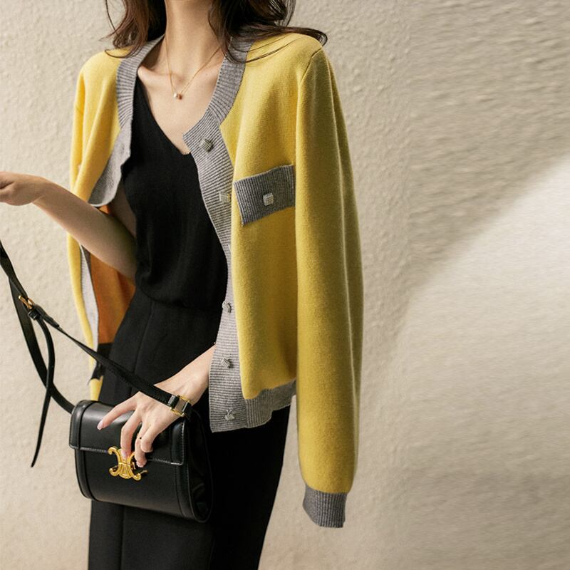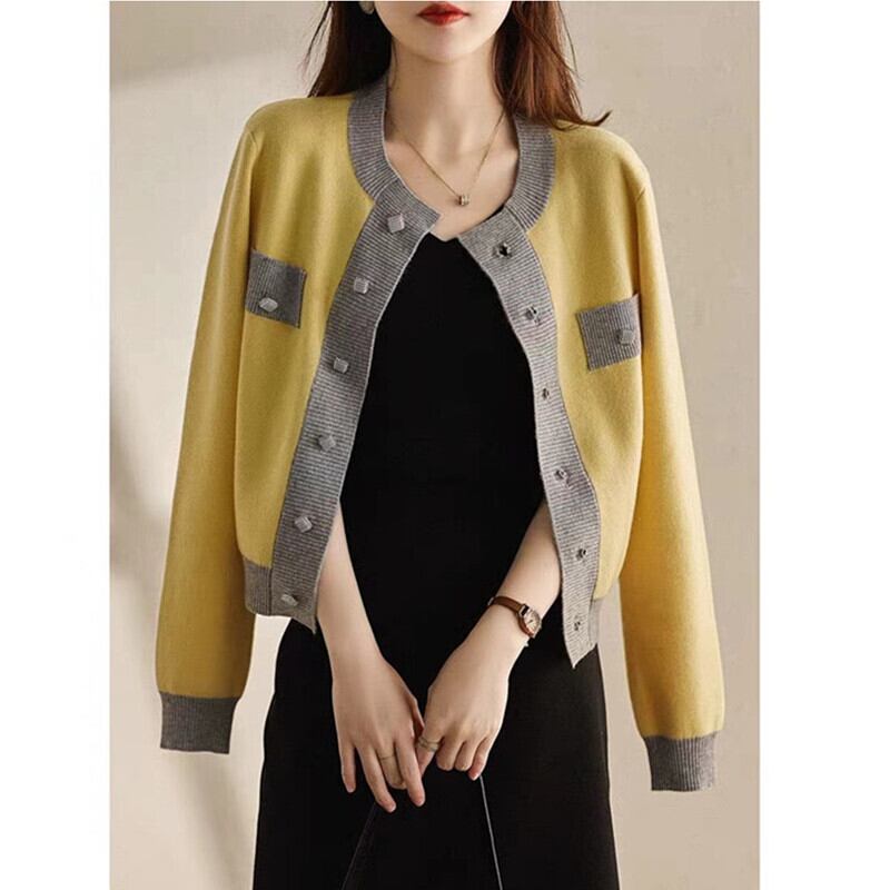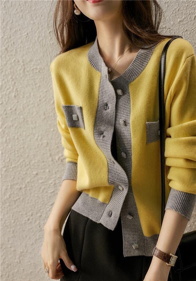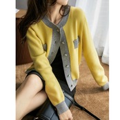イエローとグレーの組み合わせが春らしいカーディガンです。
