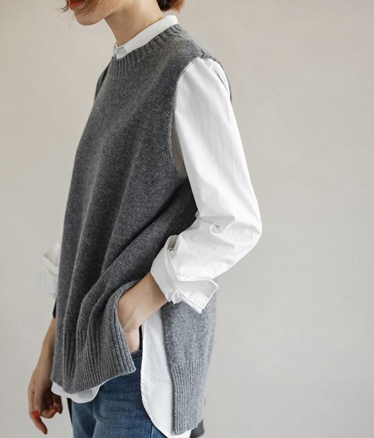 大流行中のレイヤードコーデに欠かせないニットベスト!