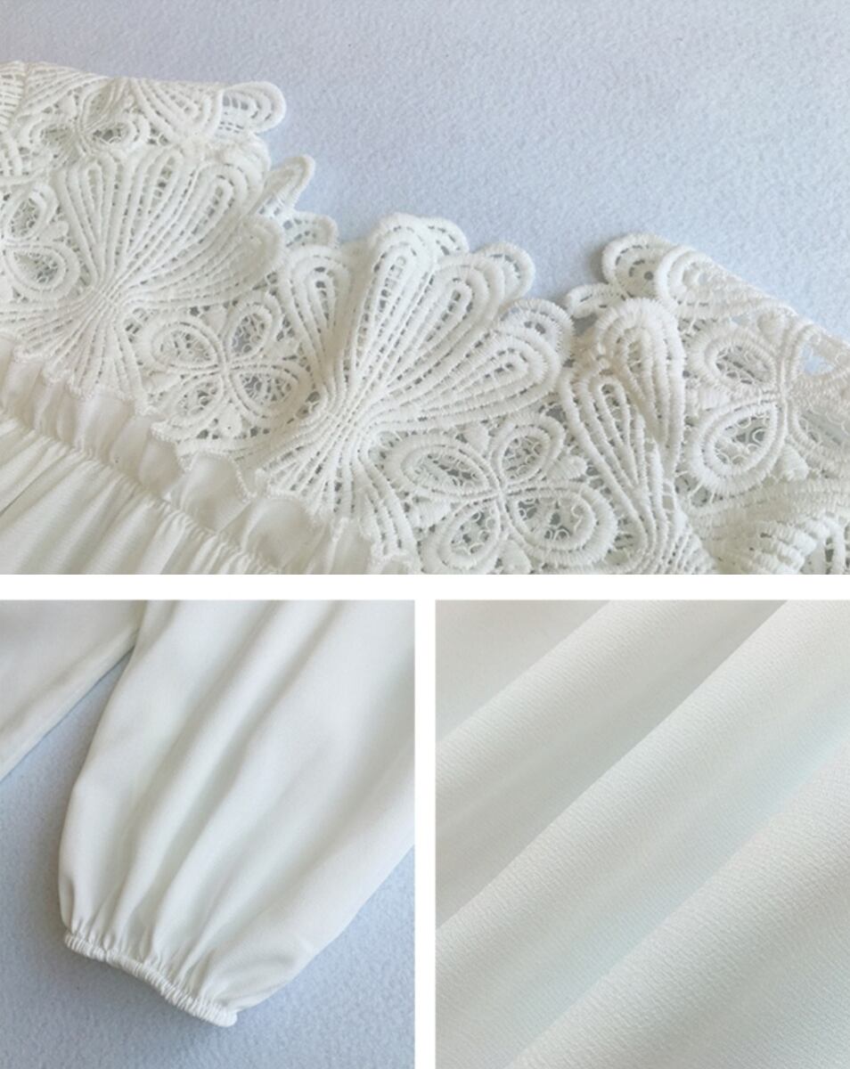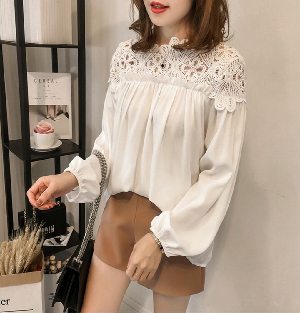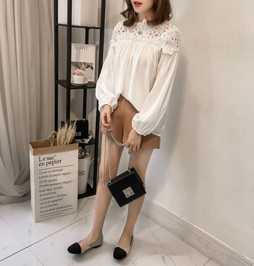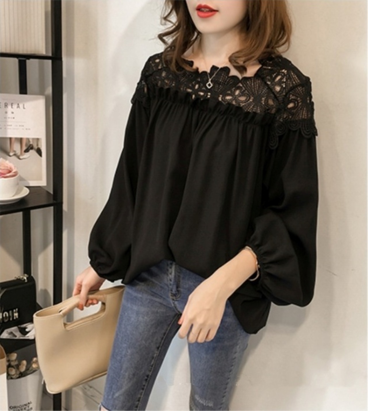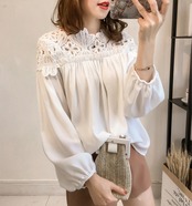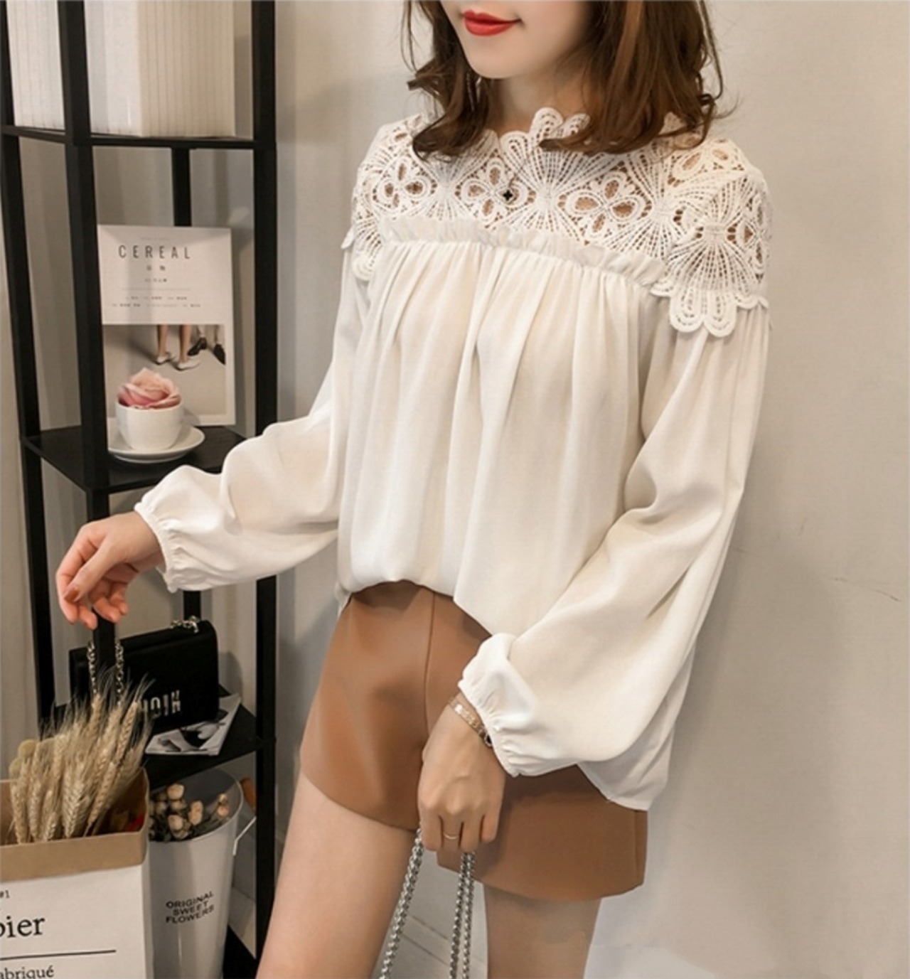 襟元のレースで上品な肌見せが叶うブラウスです。