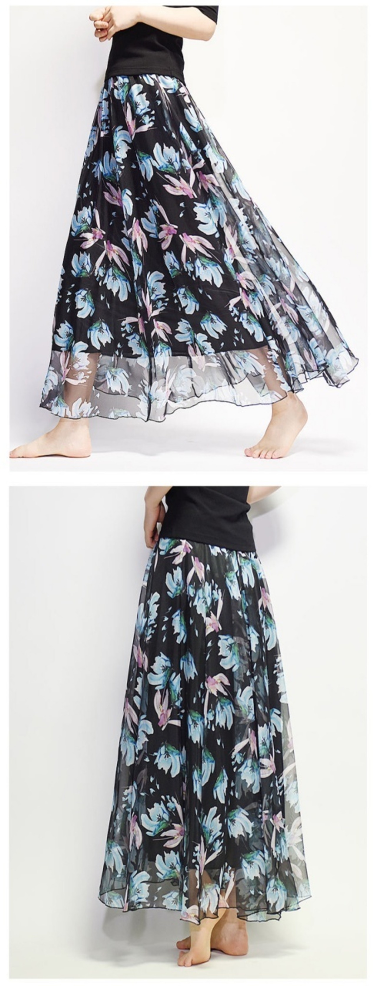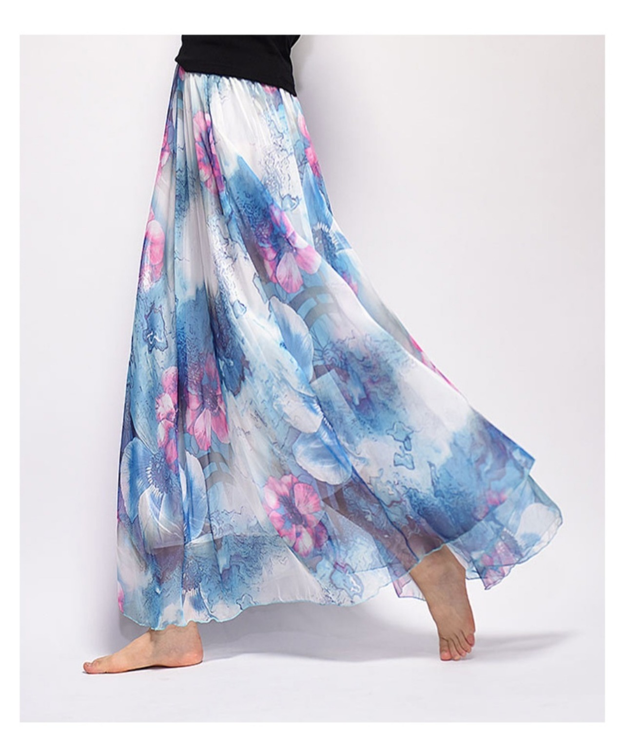 スカート ボトムス ロングスカート フレアスカート ロング ロング丈 マキシ マキシ丈 9分丈 フレア ワイド Aライン シフォン ウエストゴム ポリエステル 薄手 かわいい 大人可愛い きれいめ カジュアル 大人 上品 おしゃれ お洒落 大人女子 こなれ感 ラフ ガーリー ルーズ エレガント とろみ感 柄 小花柄 フラワー 春 夏 10代 20代 30代 40代 レディース デート お出かけ 休日 リゾート 旅行 海 着回し 普段使い お揃い 楽ちん モテ 体系カバー 美脚 脚長 ゆったり ゆる