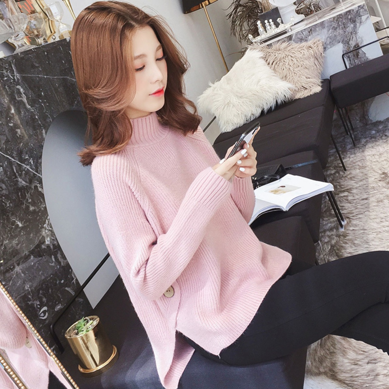 ベーシックなハイネックセーター。