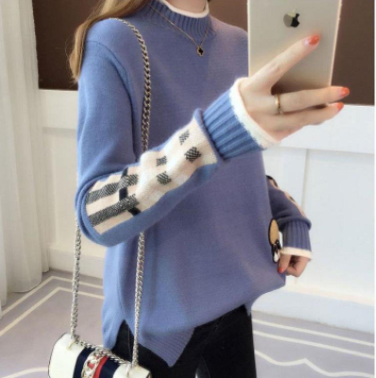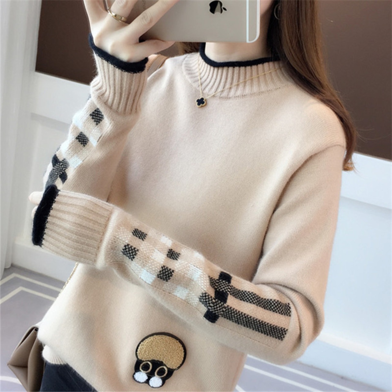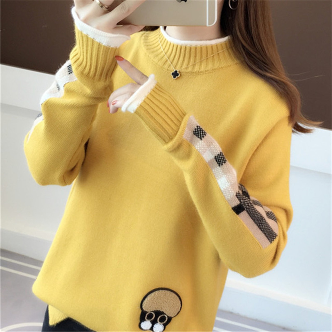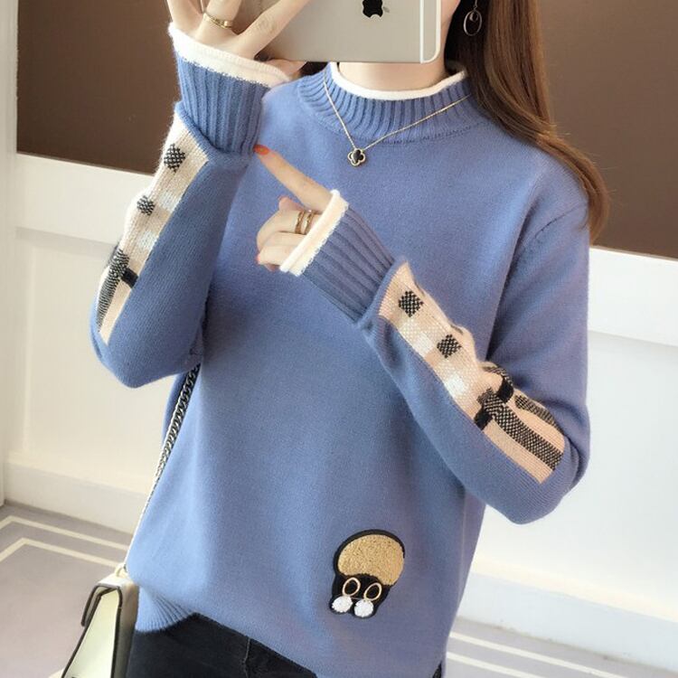 カジュアルセーター トップス セーター カジュアル ホワイト 白 ブルー 青 カーキ イエロー 黄色 レギュラー丈 袖あり 長袖 ハーフタートルネック ハイネック ストレート 大人女子 大人 上品 おしゃれ デイリーウェア レトロ レトロ風 こなれ感 キュート かわいい 女子 個性的 デザイン 主役級 存在感 柄 配色 チェック柄 秋 冬 20代 10代 レディース 女性用 学生 学校 通学 デート お出かけ 女子会 食事会 M L XL 2XL 3XL