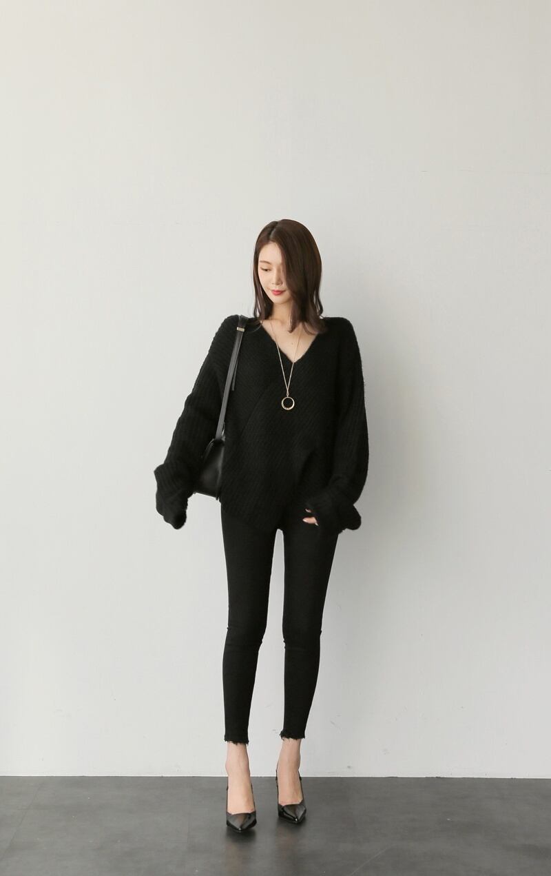 Vネックで抜け感をだしつつ、スタイルアップに期待できます。