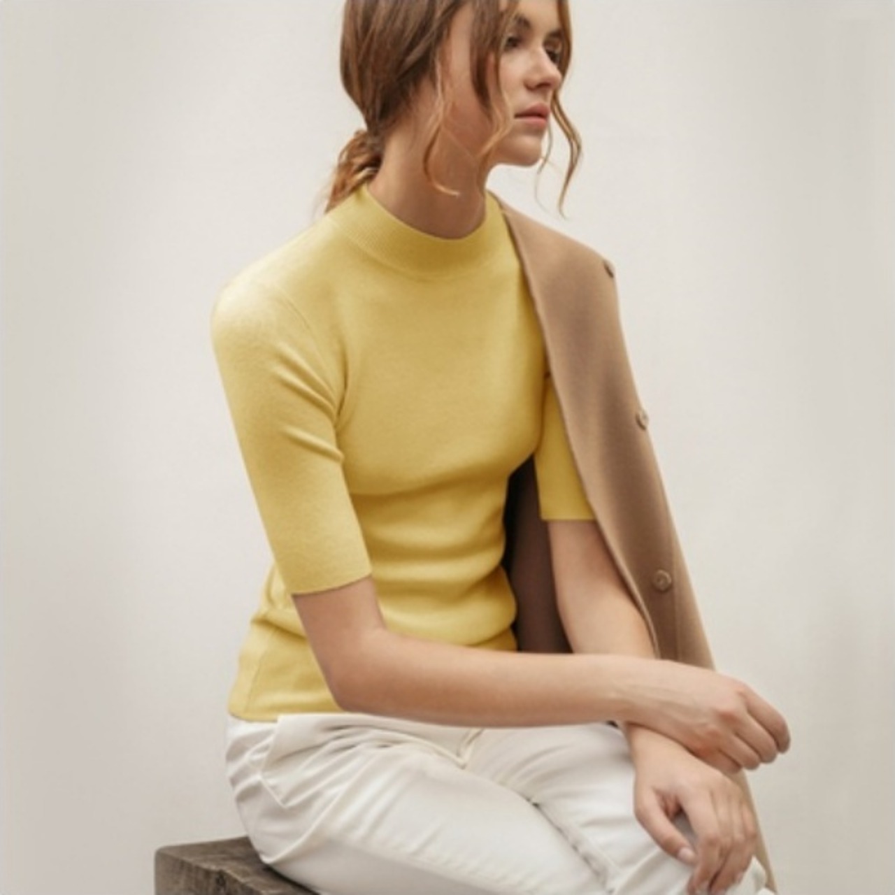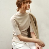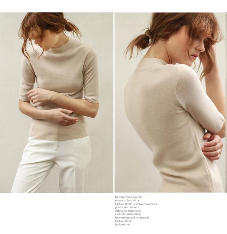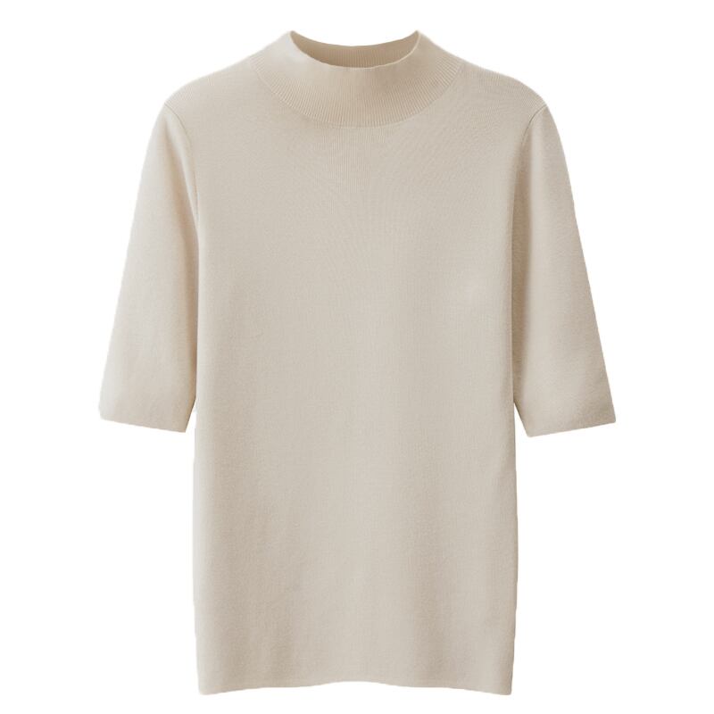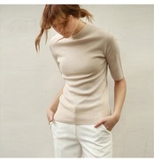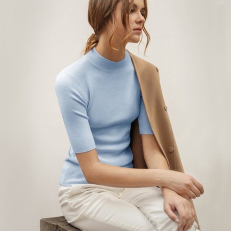 ベーシックな5分袖ニットソー。