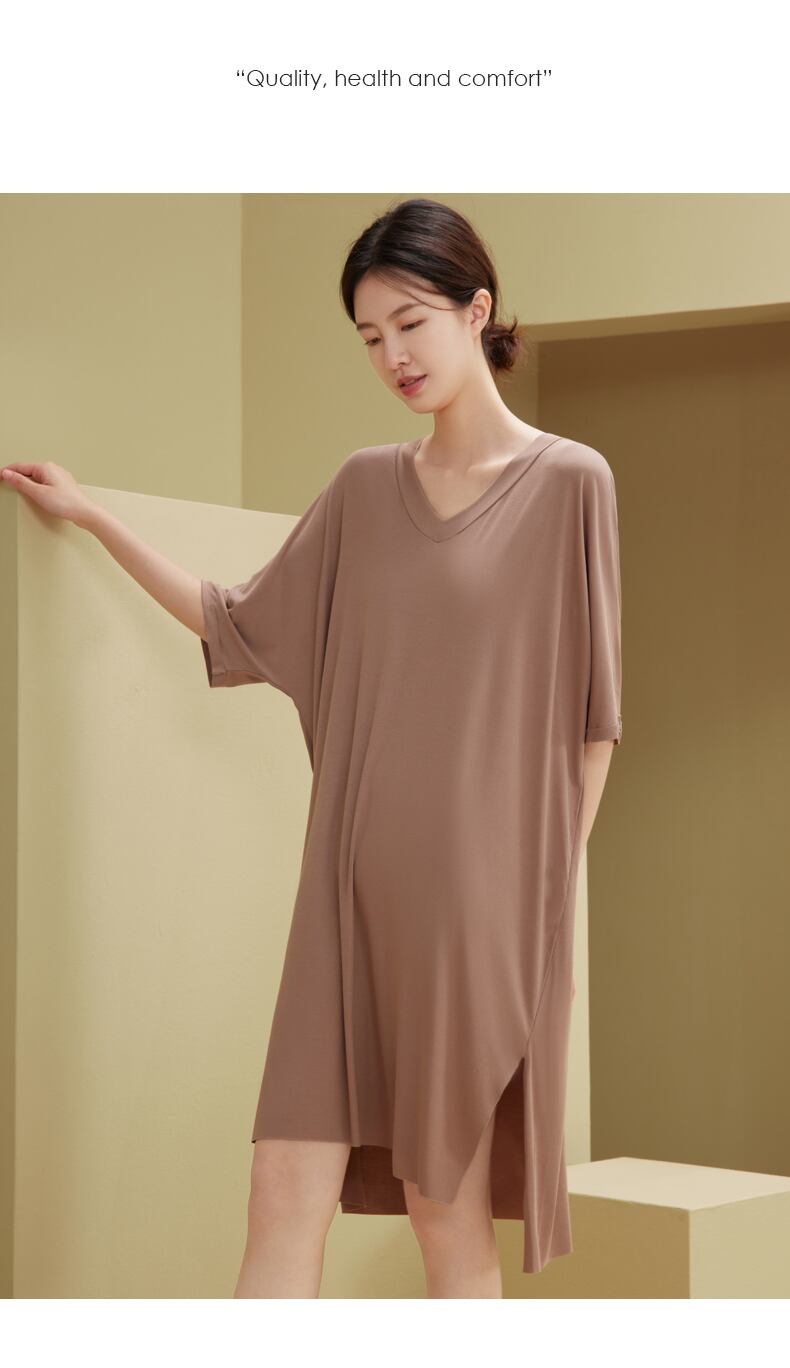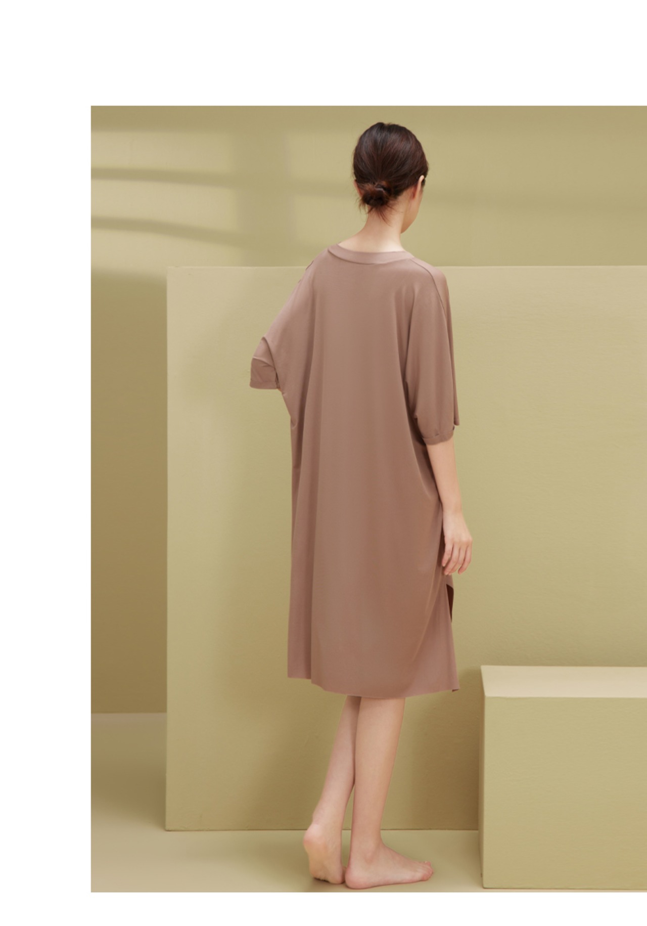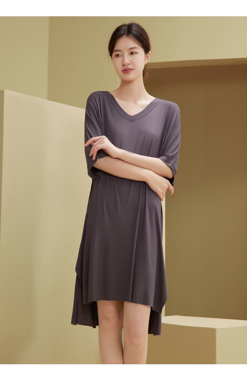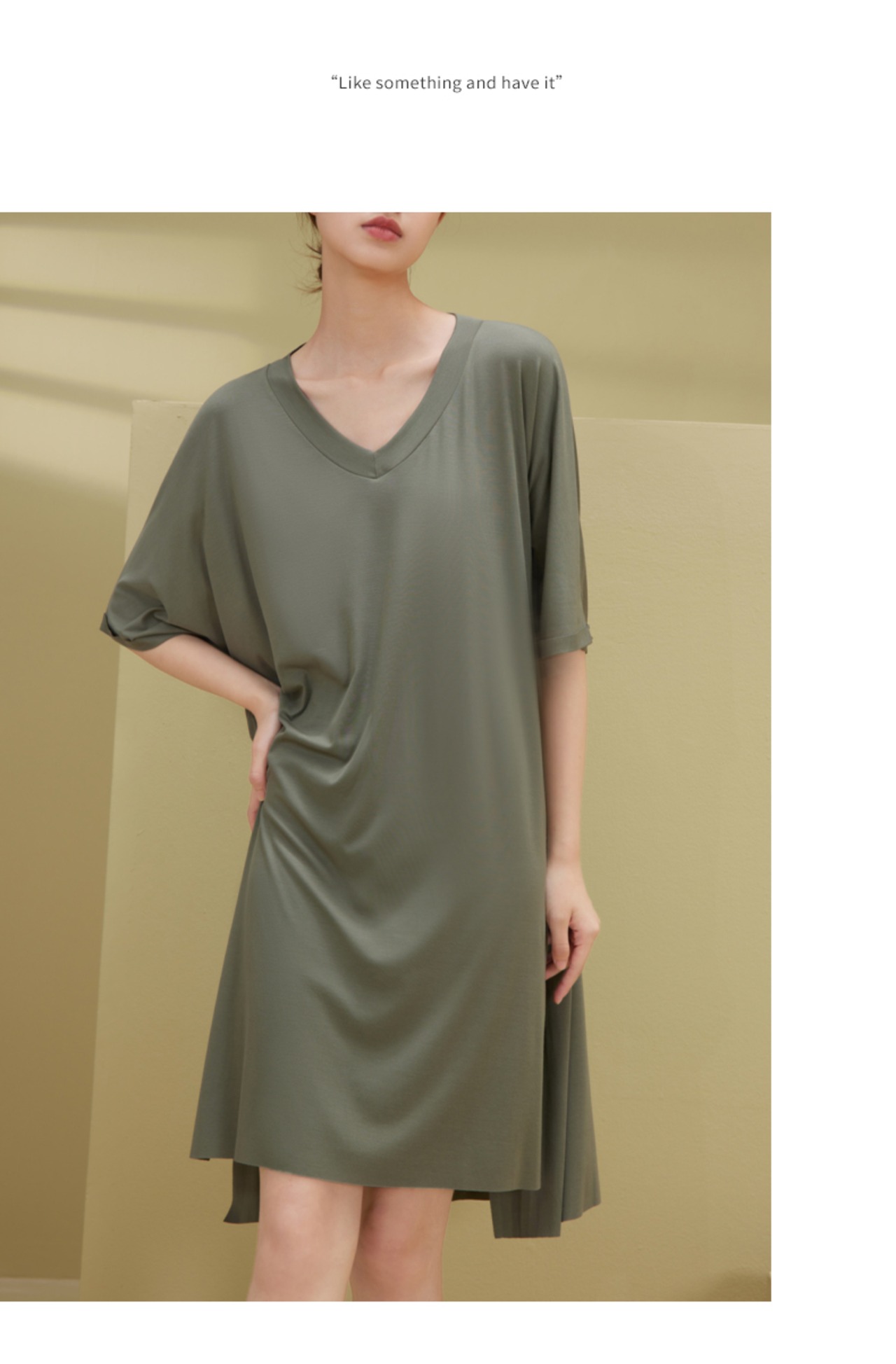Tシャツパジャマ トップス パジャマ ルームウェア Tシャツ シンプル ブラック 黒 グレー 灰色 グリーン 緑 カーキ ミディアム丈 袖あり 半袖 ラウンドネック ストレート スリット 大人女子 大人 上品 おしゃれ きれいめ シンプル デイリーウェア レトロ レトロ風 こなれ感 ルーズ シルエット ラフ 主役級 存在感 無地 夏 サマー 20代 10代 30代 40代 レディース 女性用 休日 おうち らくちん 着回し 普段使い 定番 スタイル M L くすみカラー