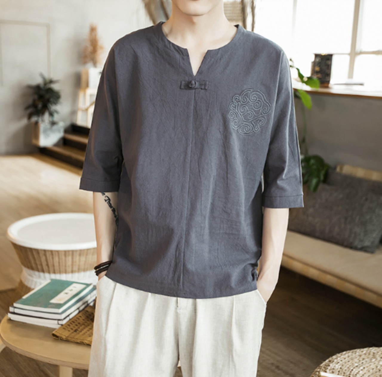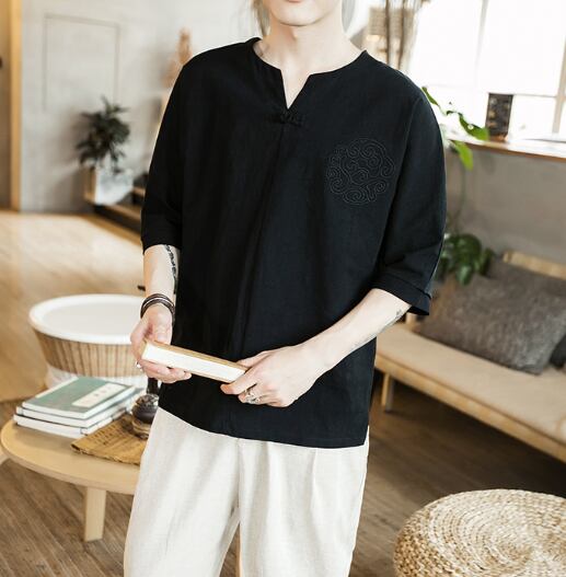 チャイニーズTシャツ トップス Tシャツ カジュアル ブラック 黒 ホワイト 白 グレー 灰色 グリーン 緑 ネイビー 紺 レギュラー丈 袖あり 半袖 ラウンドネック ストレート かっこいい クール デイリーウェア レトロ レトロ風 こなれ感 ルーズ シルエット ラフ 個性的 デザイン 主役級 存在感 柄 夏 サマー 20代 10代 30代 40代 メンズ 男性用 学生 学校 通学 休日 おうち らくちん 着回し 普段使い M L XL 2XL 3XL 4XL 大きいサイズ
